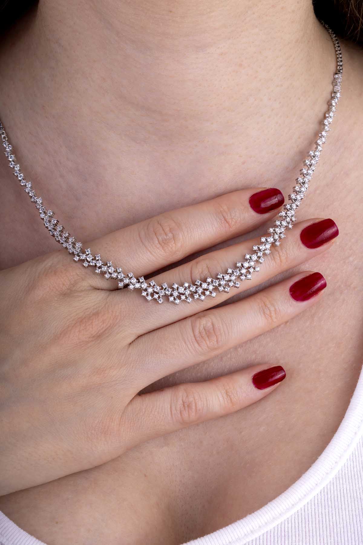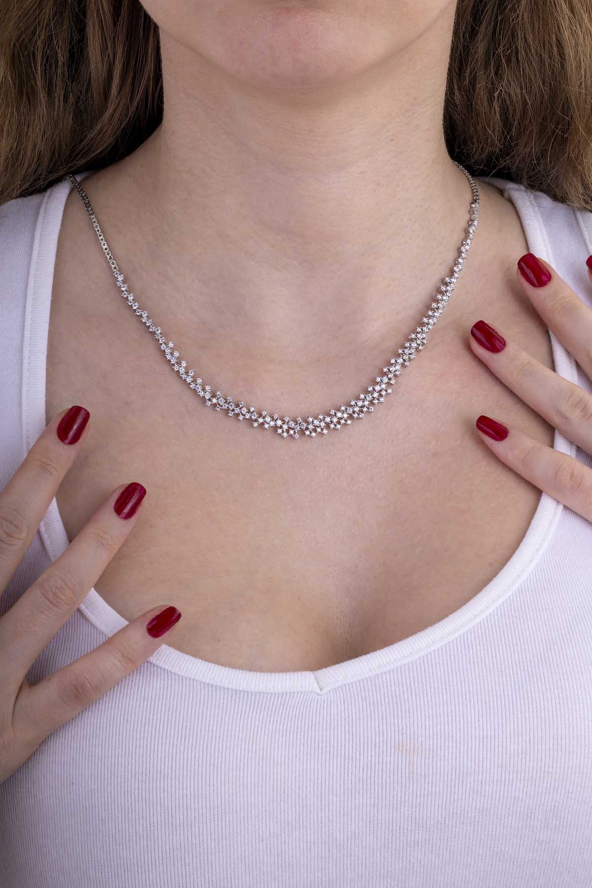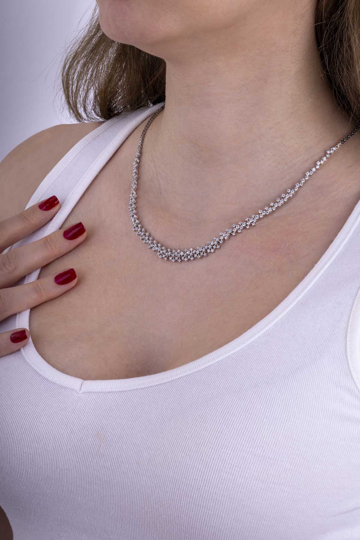 Göz alıcı pırlanta montürlerle tasarlanmış bu kolye, özel günlerinizde sizi ön plana çıkarır. Etkileyici parlaklığı ile unutulmaz anlar yaratın.