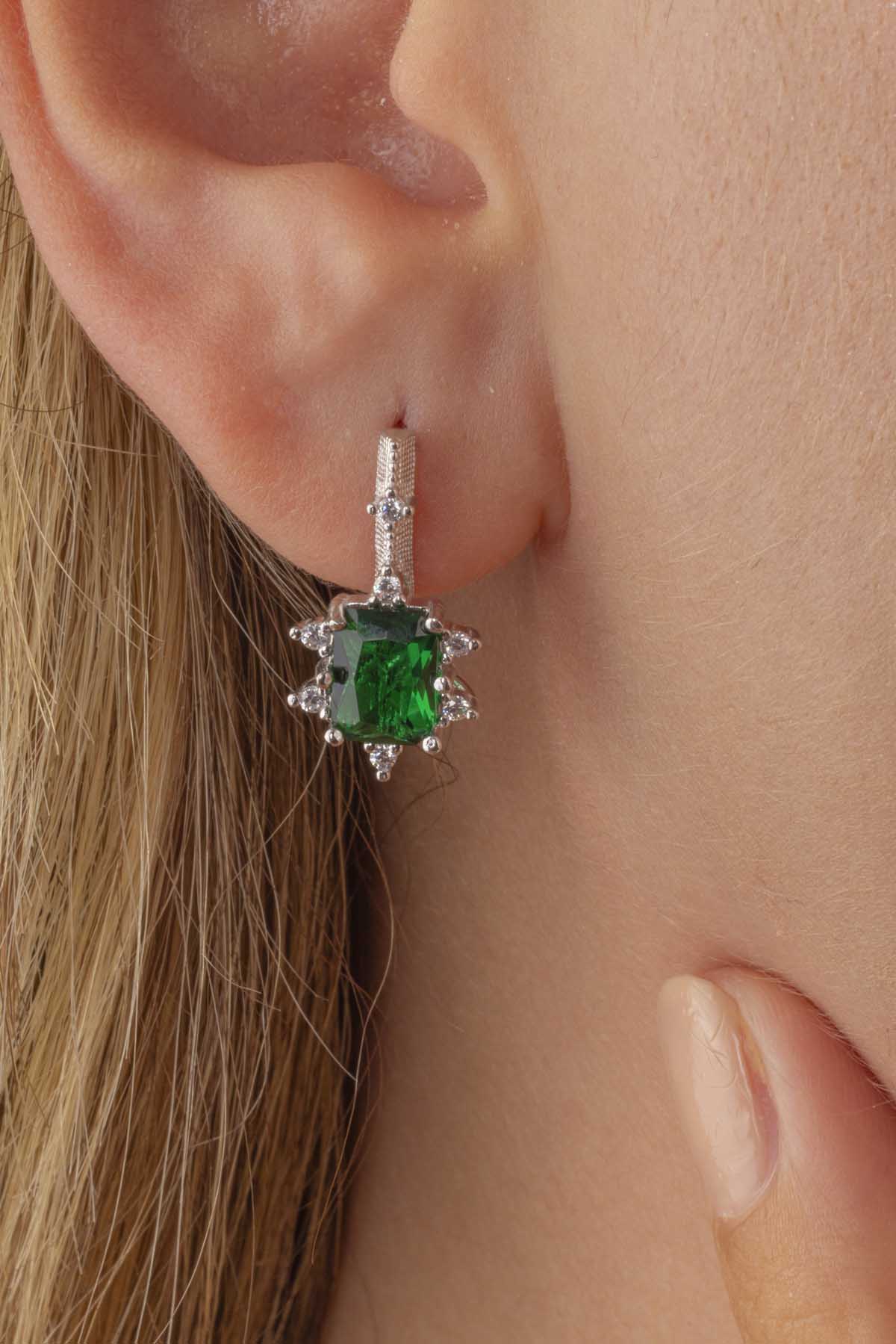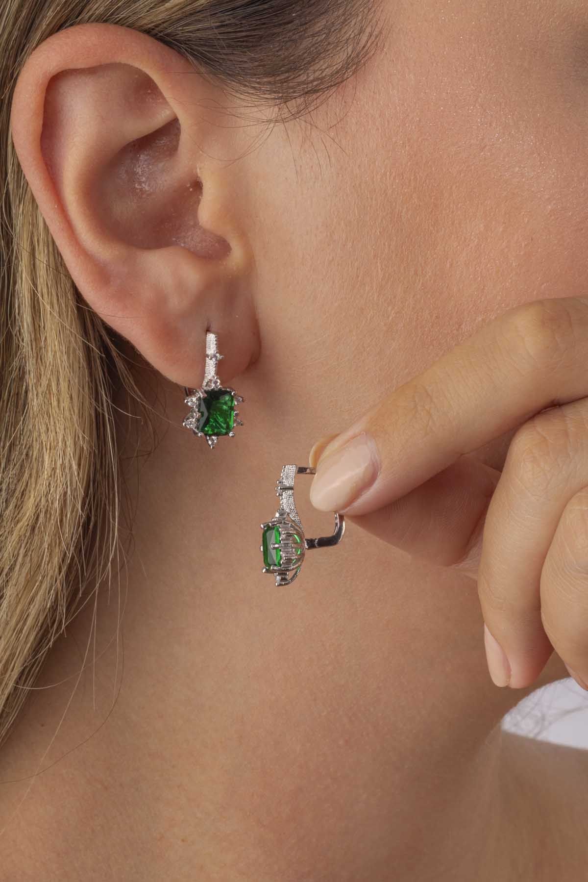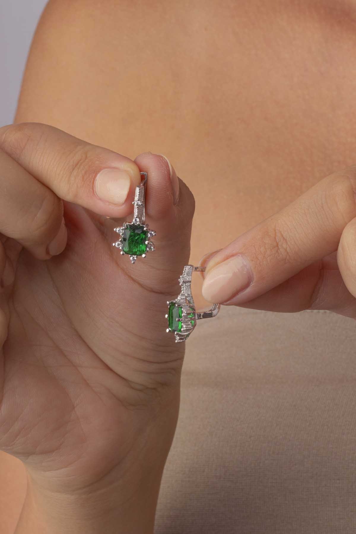 Pırlanta Montür Prenses Tektaş Gümüş Küpe Zümrüt