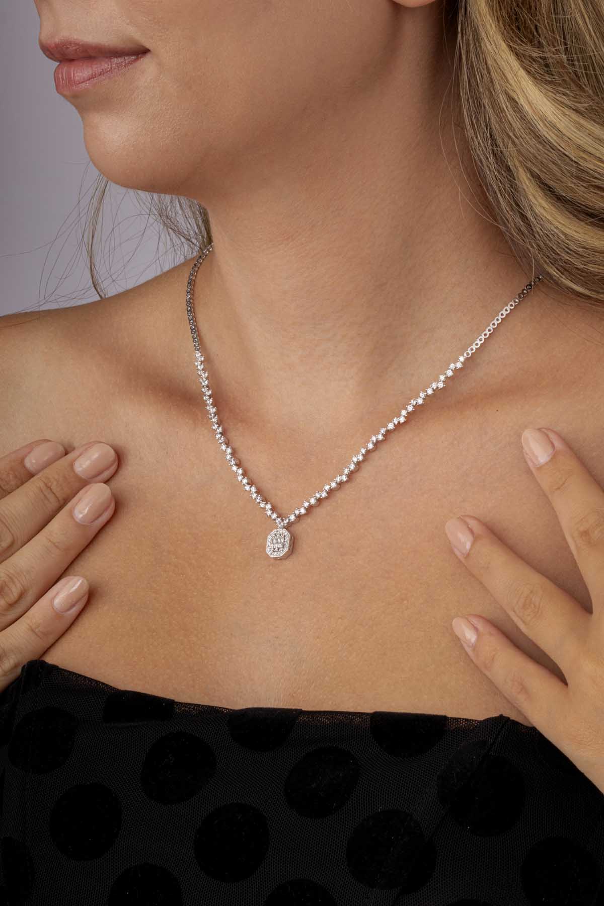 Pırlanta Montür Sıralı Tek Taş Rodyum Kaplama Baget Gümüş Kolye