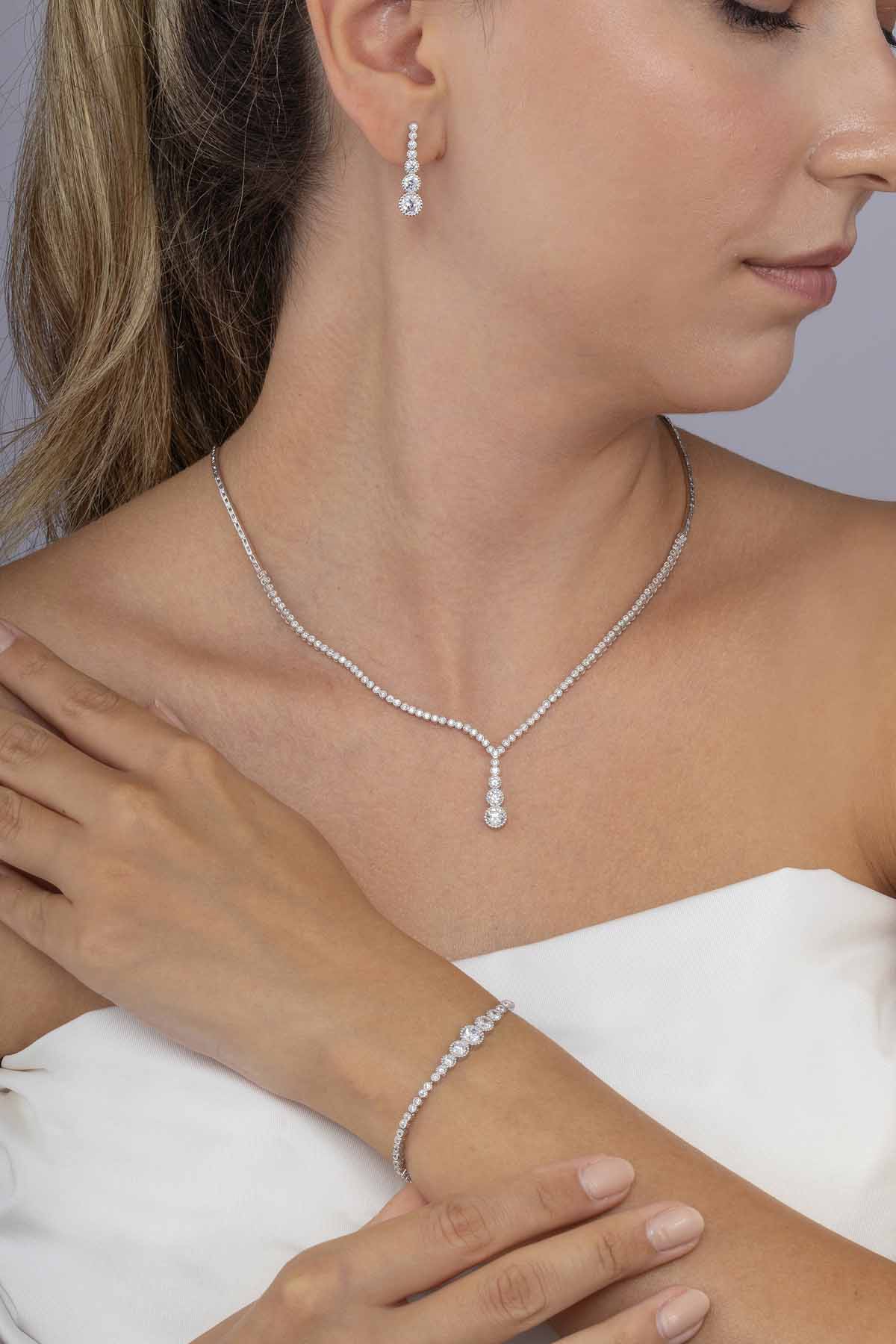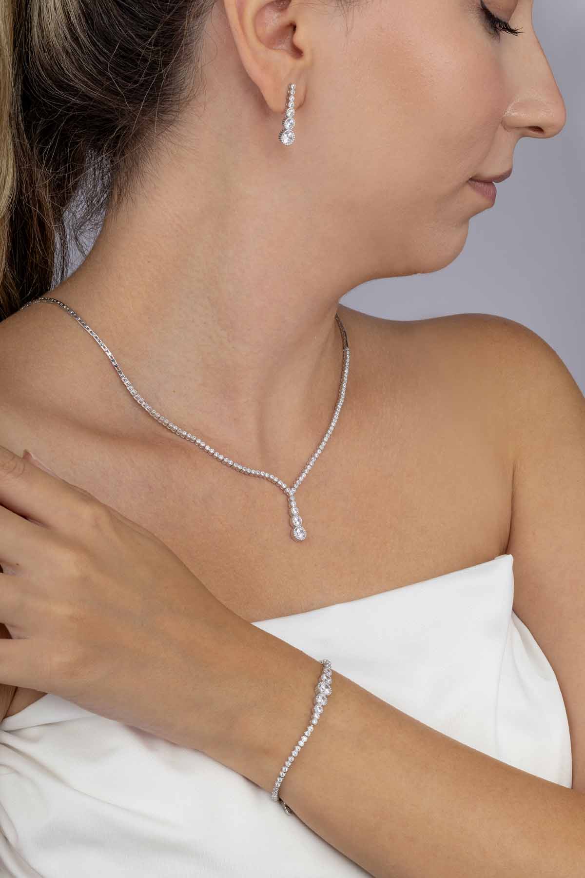 Gelince Haber Ver925 ayar gümüşten tasarlanmış su yolu set, şıklığı ve zarafeti aynı anda sunan göz alıcı bir takı tercihidir. Özel günler, düğün, nişan, davet ve balo gibi unutulmaz anlar için ideal olan bu set; kolye, küpe ve bileklikten oluşan tamamlayıcı parçalarıyla kusursuz bir bütünlük sağlar. Parlak taşların ardışık dizilimiyle oluşturulan su yolu tasarımı, zarafeti simgelerken aynı zamanda ışığın en güzel şekilde yansımasını sağlar.