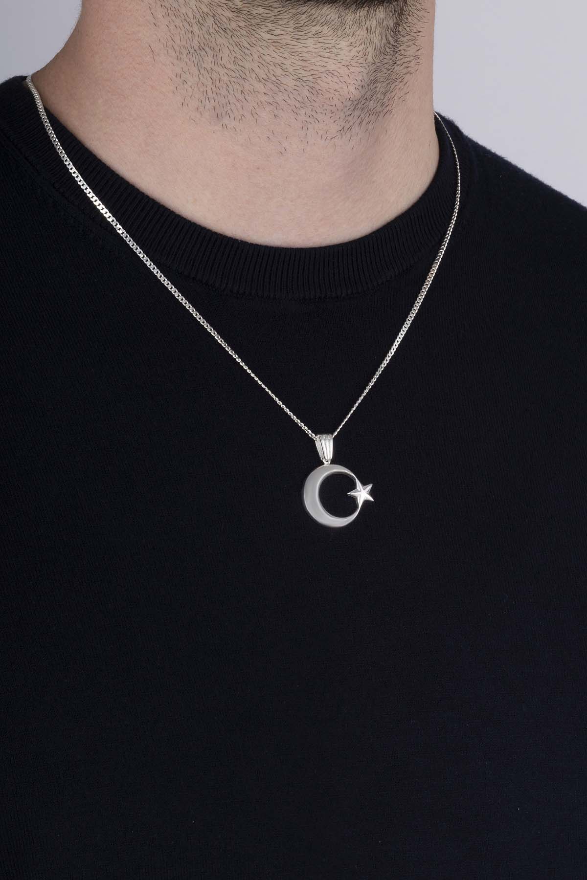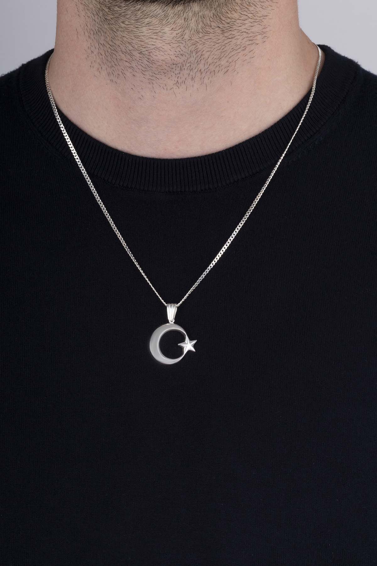 Rodyum Kaplama Ay Yıldız Gümüş Erkek Kolyesi - 1