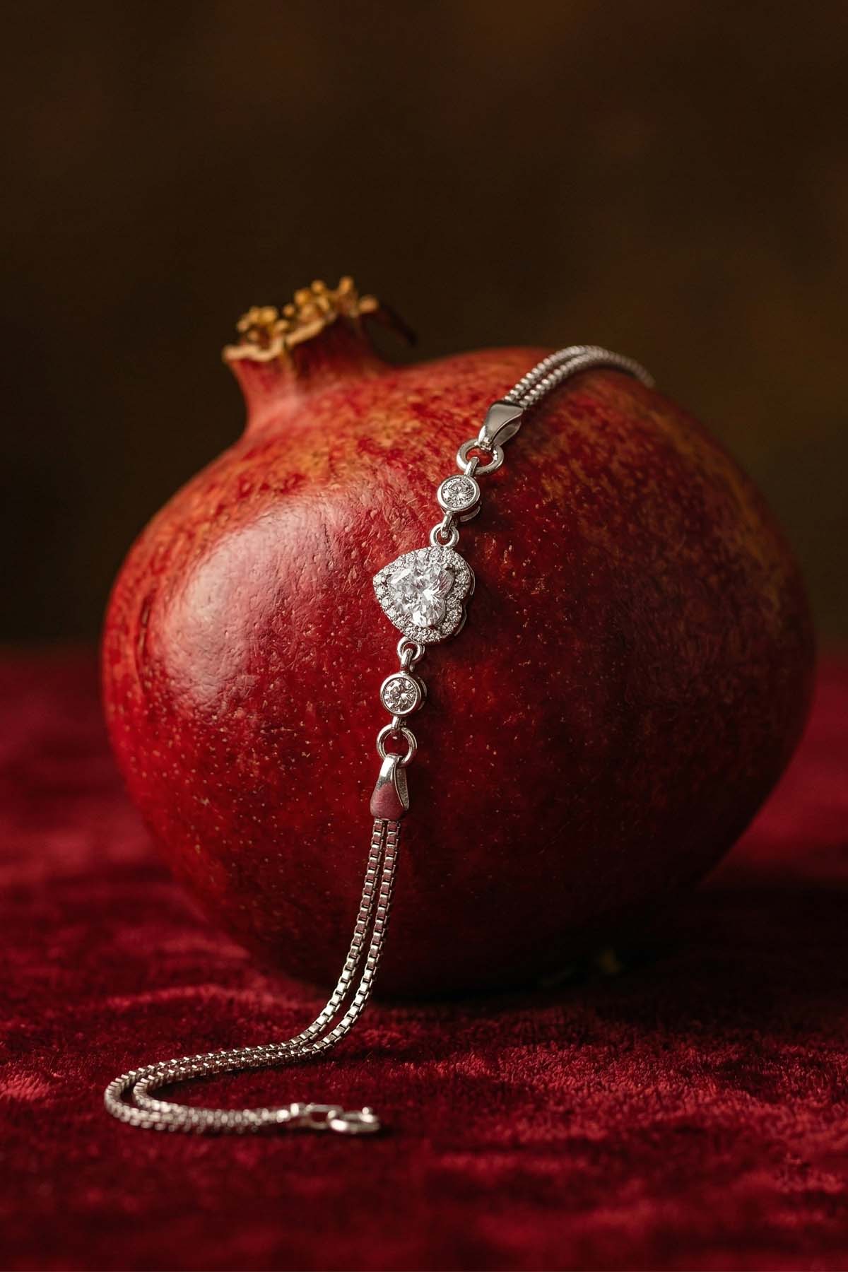 Kalp şeklindeki bu bileklik ile sevginizi gösterin. İnce işçilikle yapılmış bu parça, özel birine olan bağlılığınızı ifade etmenin şık bir yoludur.