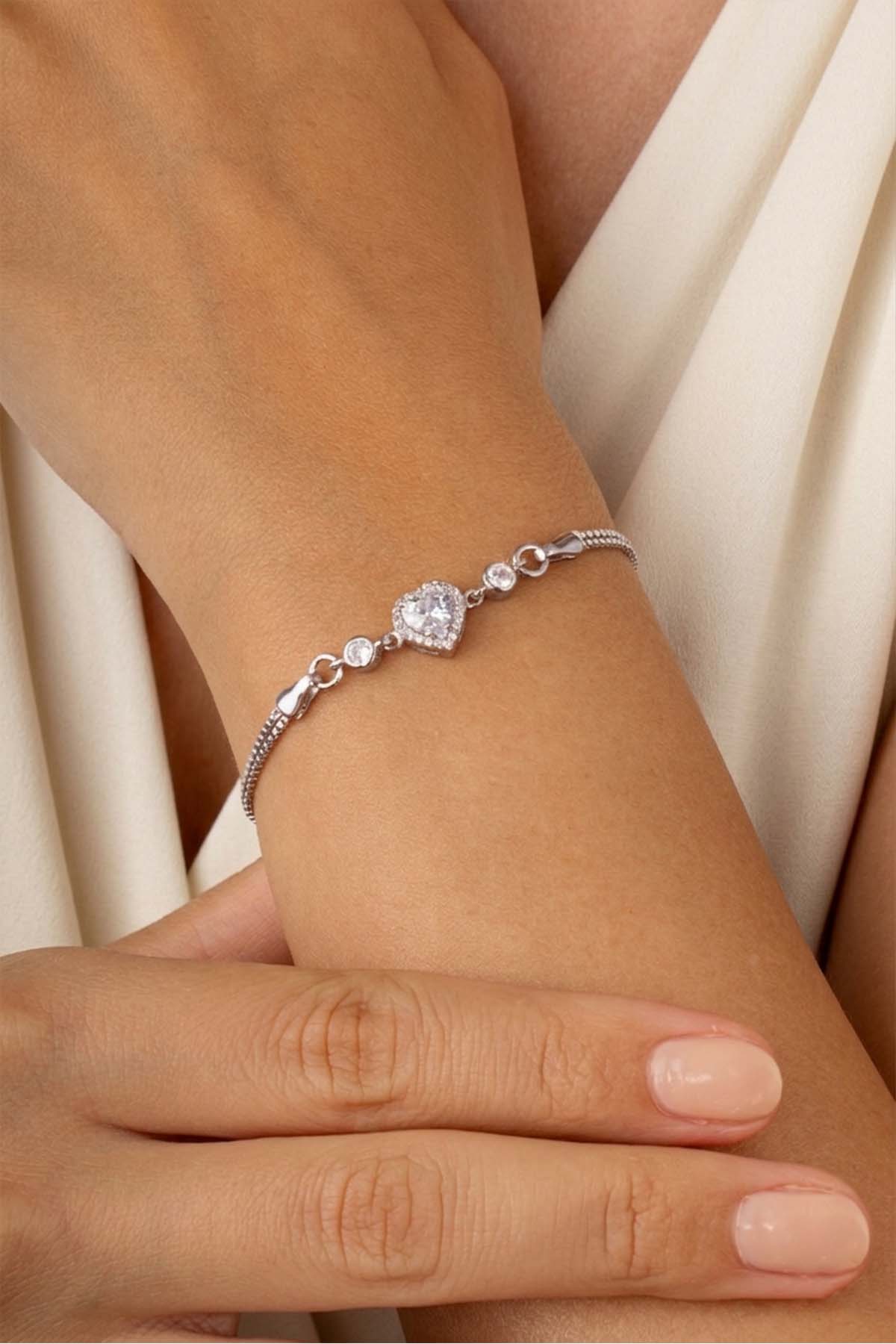 Rodyum Kaplama Kalp Gümüş Su Yolu Bileklik - 1