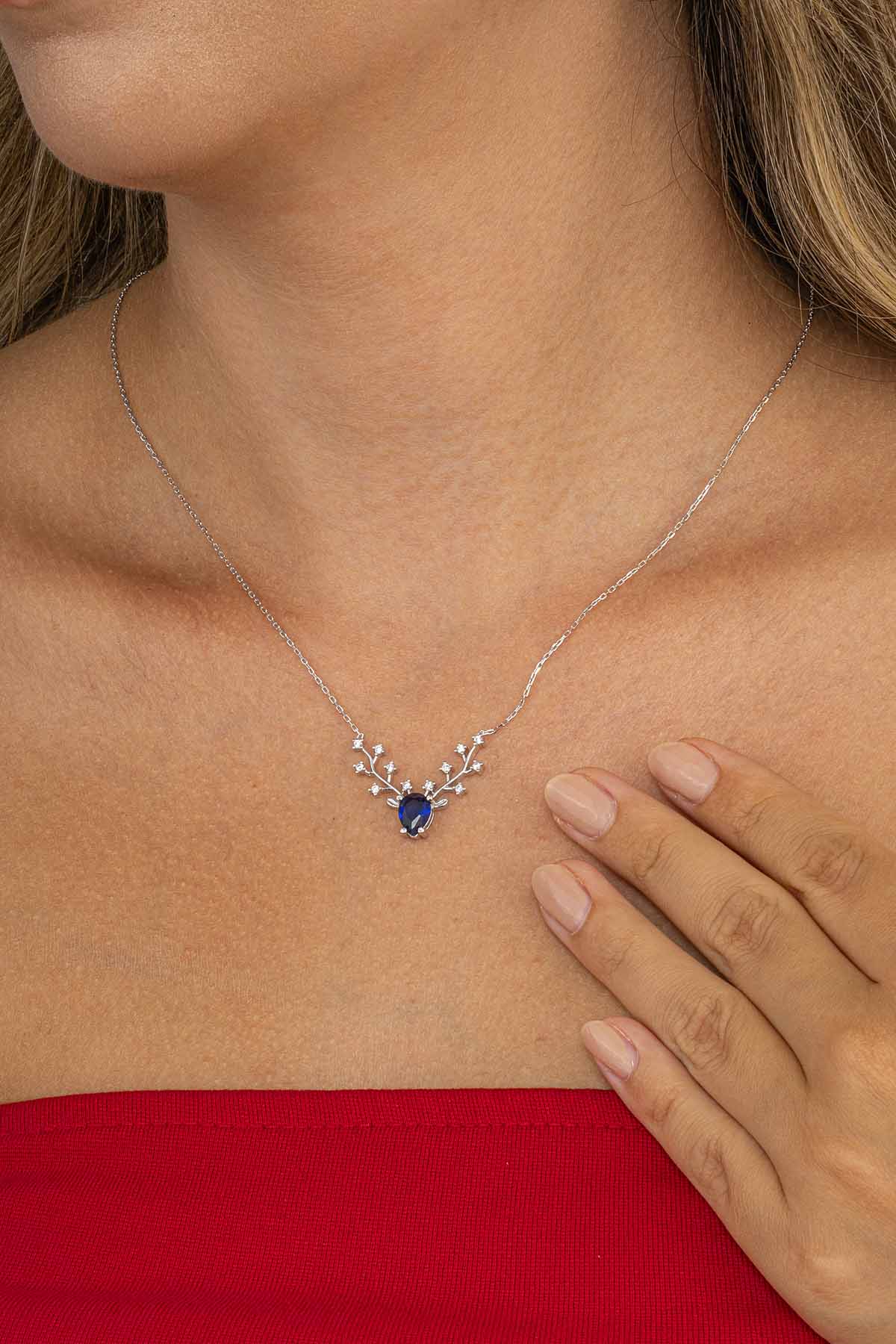 Zarif dallar üzerinde parlayan taş detayları, feminenliğinizi öne çıkarırken, safirin derin mavisi stilinize asil bir dokunuş katacak. 925 ayar gümüşün dayanıklılığı sayesinde uzun yıllar güvenle kullanılabilecek bu özel tasarım, hem modern hem de klasik kombinlerle mükemmel uyum sağlayacak.