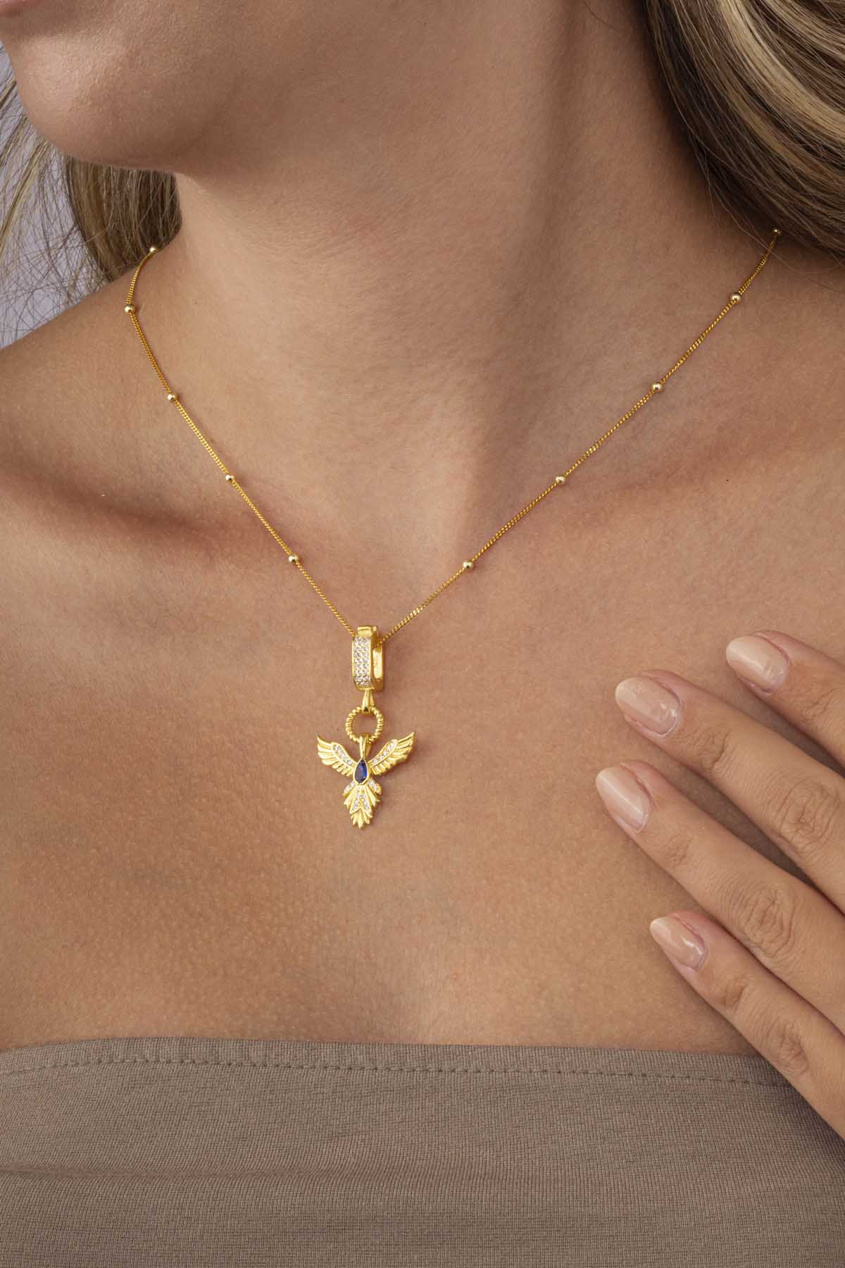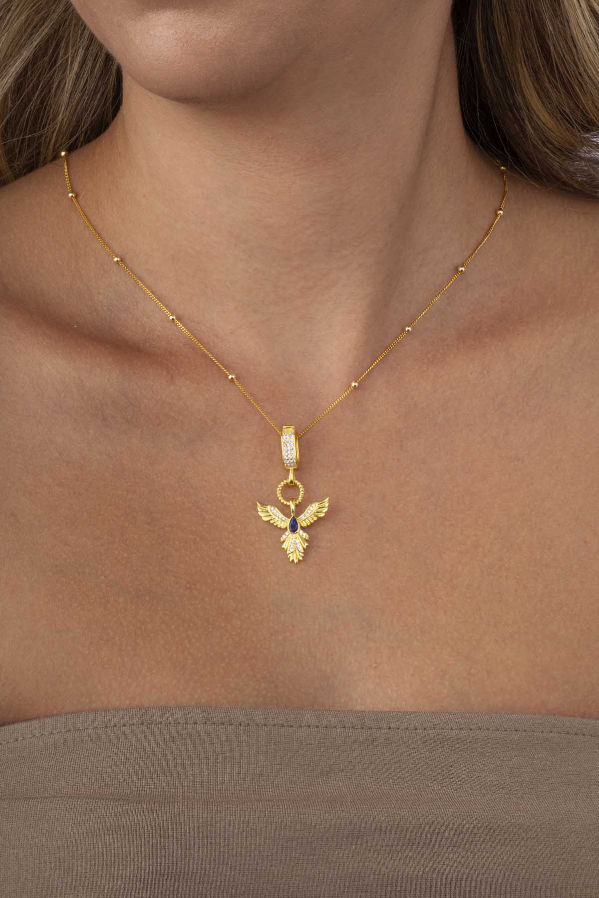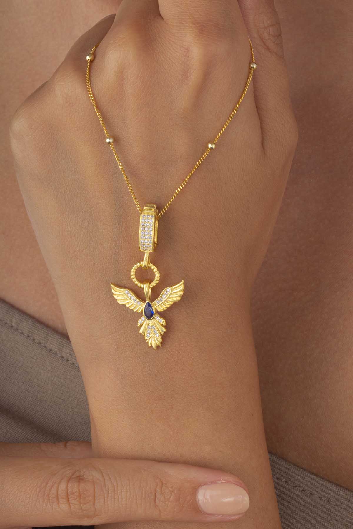 Yeniden doğuşun ve ölümsüzlüğün sembolü olan 925 ayar gümüş altın kaplama anka kuşu kolye, zarif tasarımıyla günlük şıklığınıza ilham verici bir anlam katıyor.