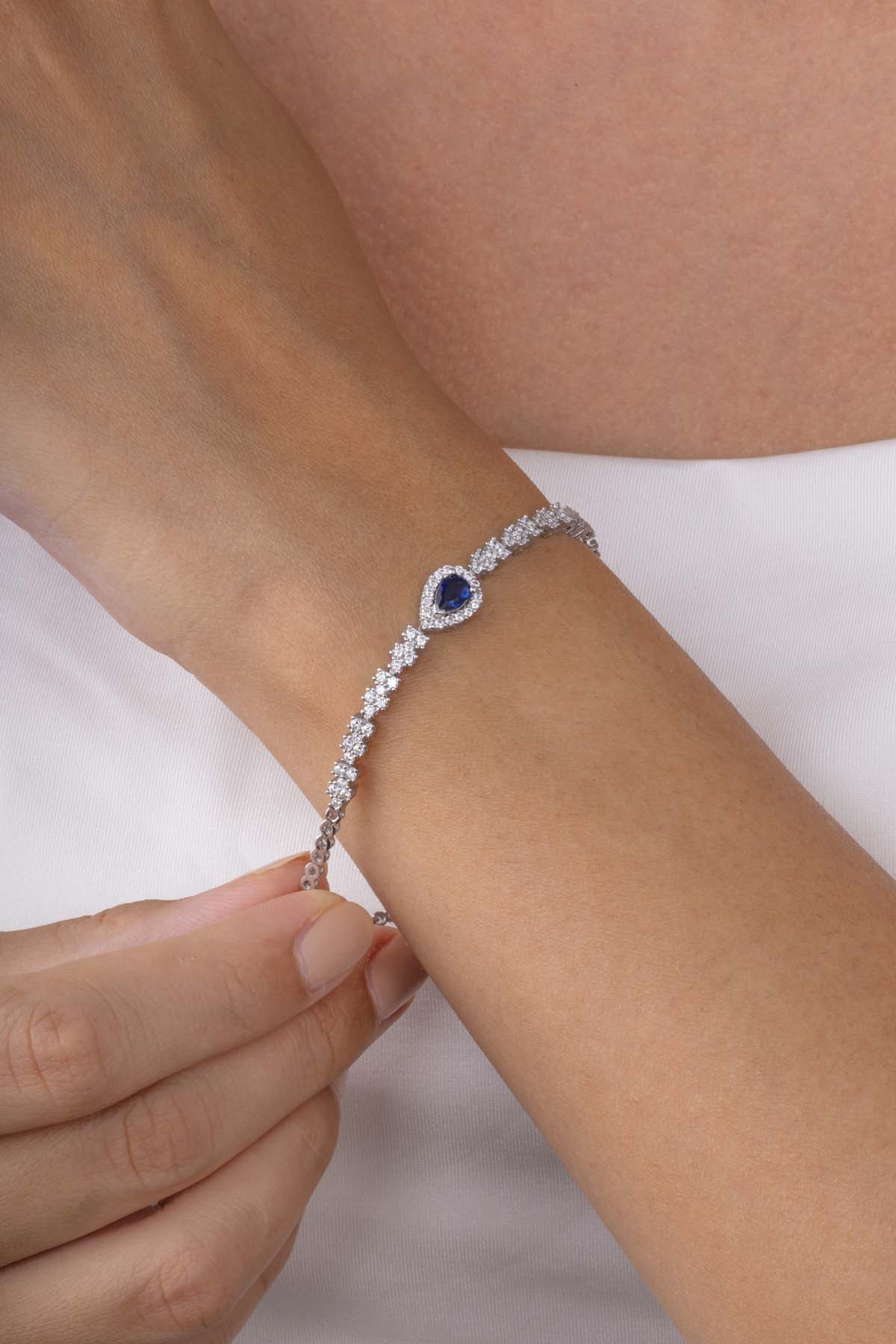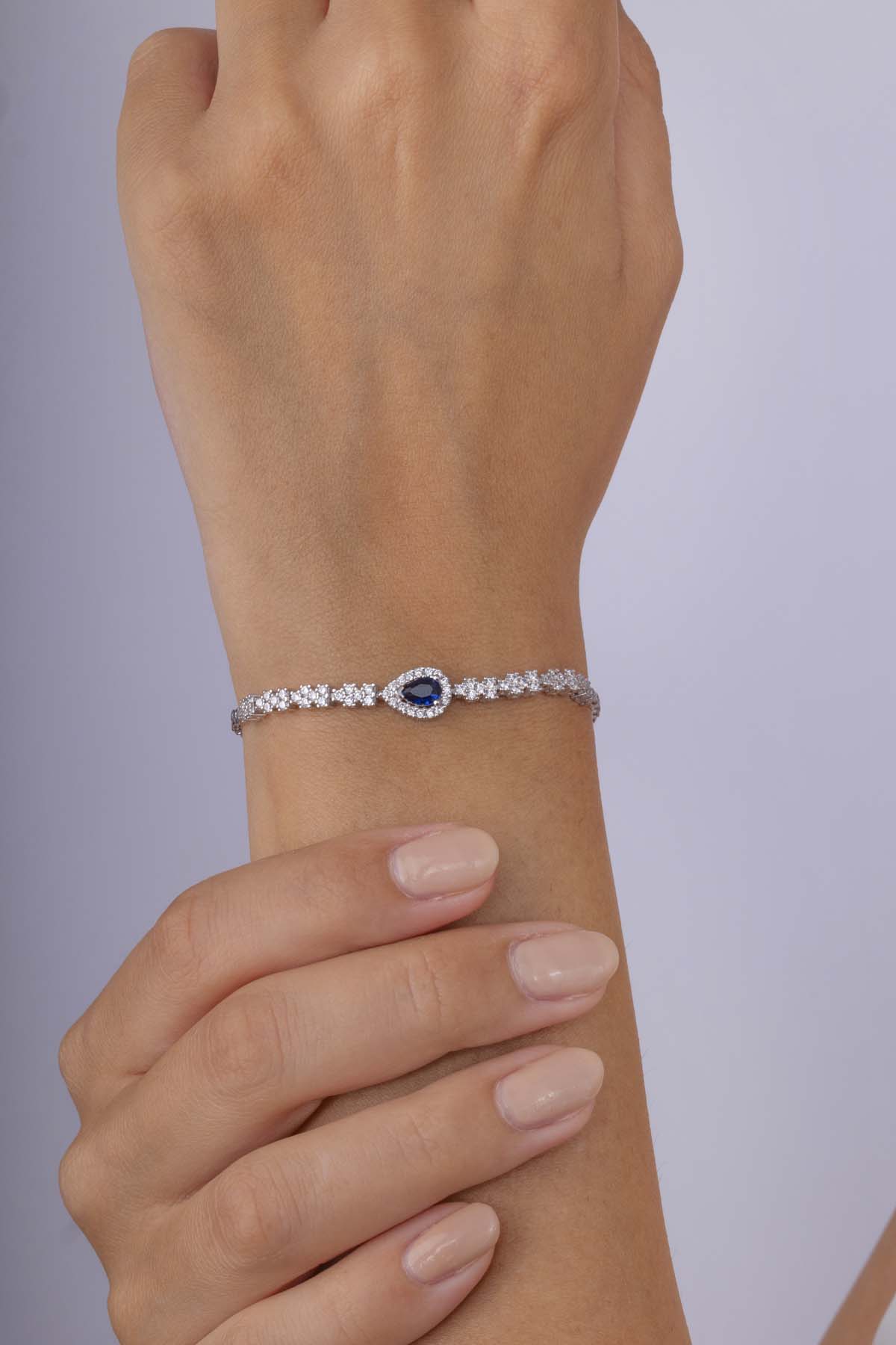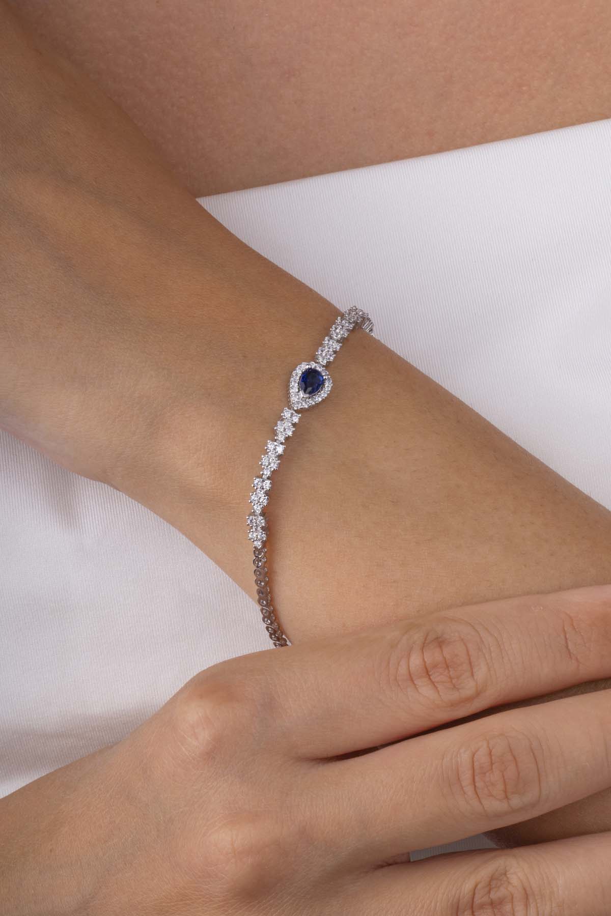 Zarif bir dokunuş… Safir taşlı su yolu bileklik, şıklığınızı tamamlayan ışıltılı bir detay sunar.