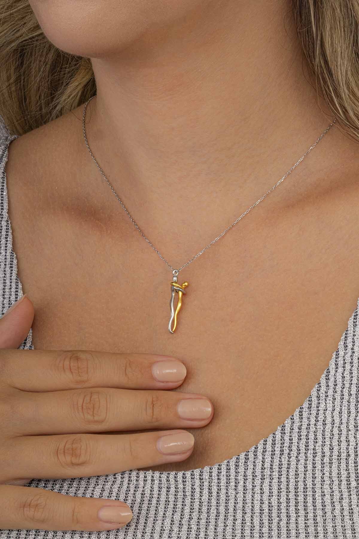 Sarılan Aşıklar Kadın Gümüş Kolye - 1