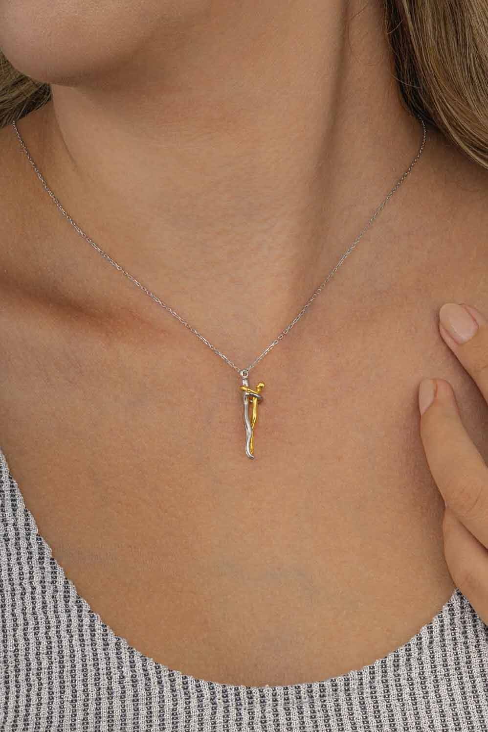 Sarılan Aşıklar Kadın Gümüş Kolye - 2