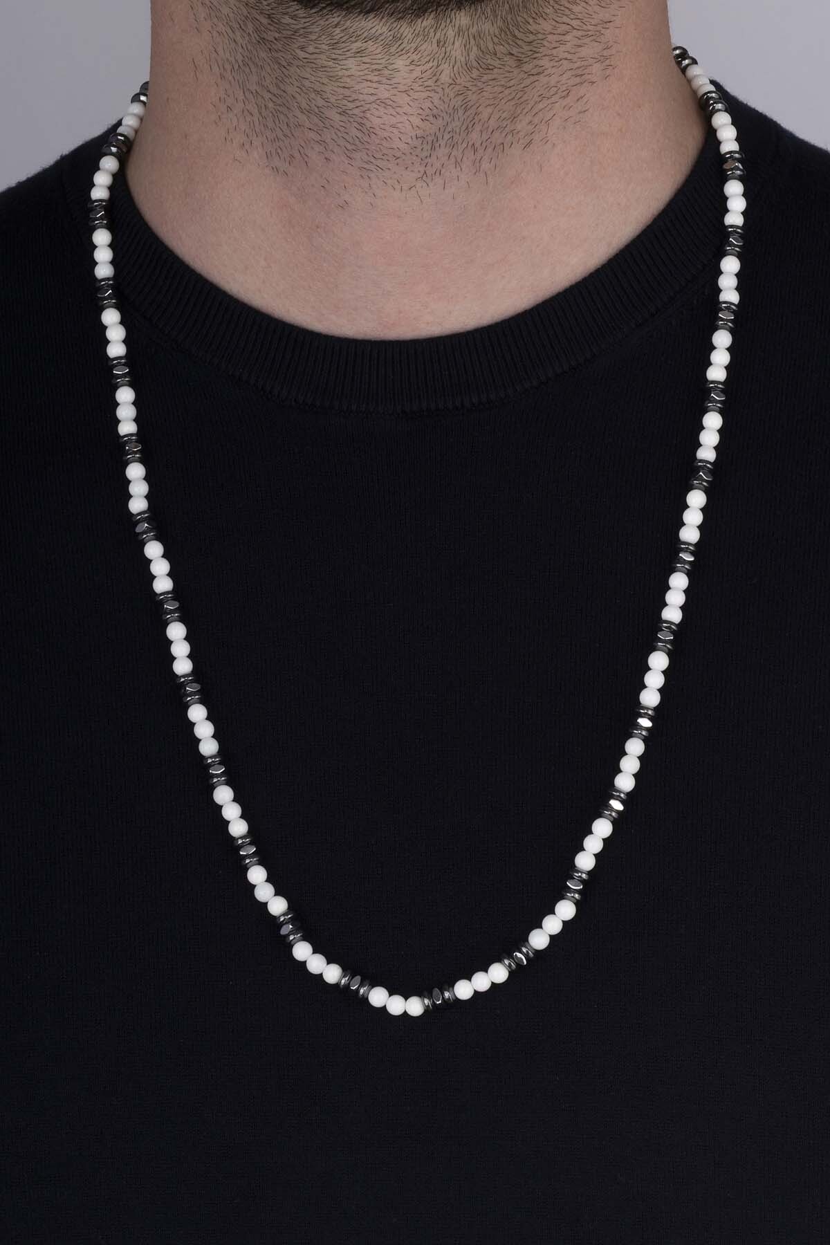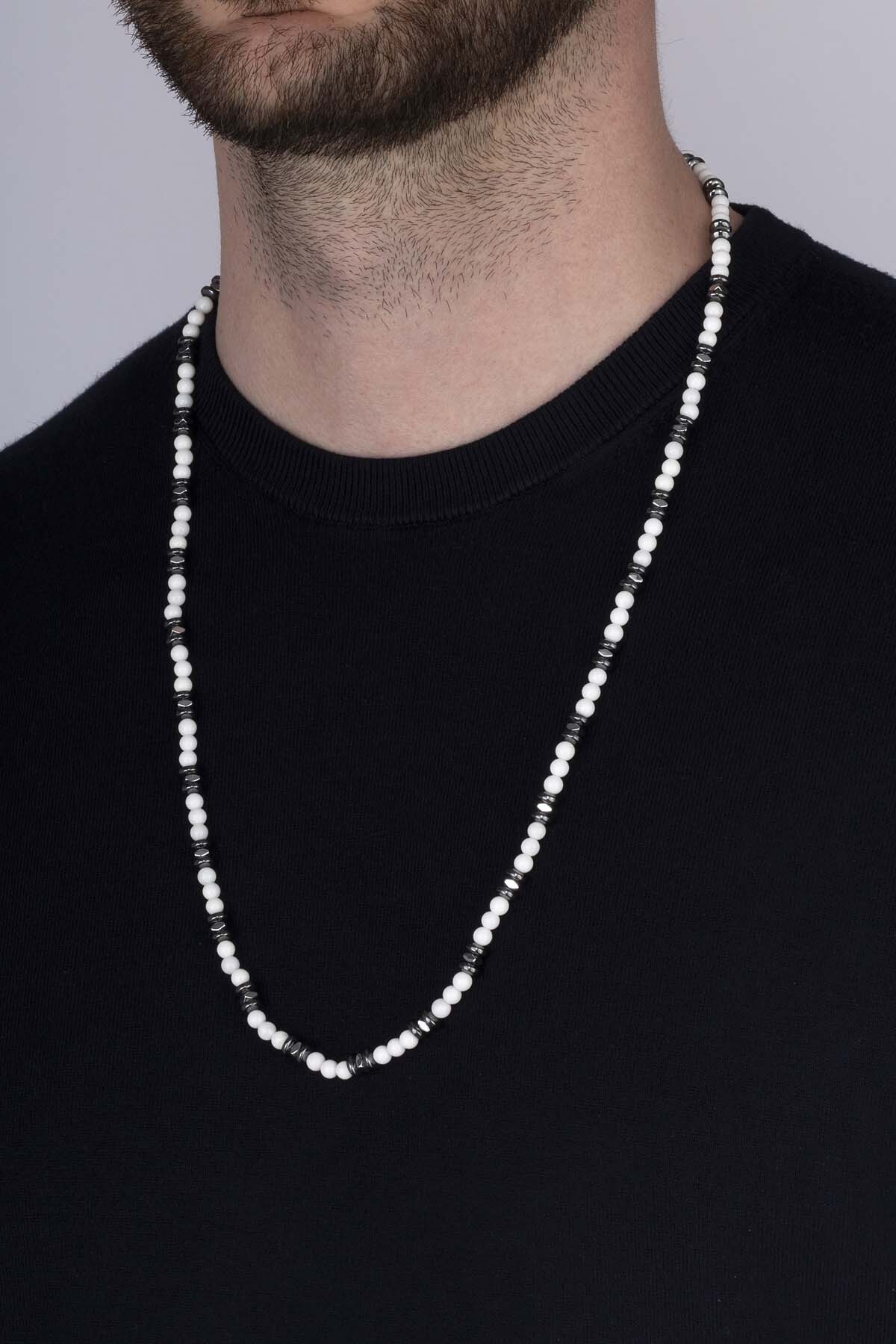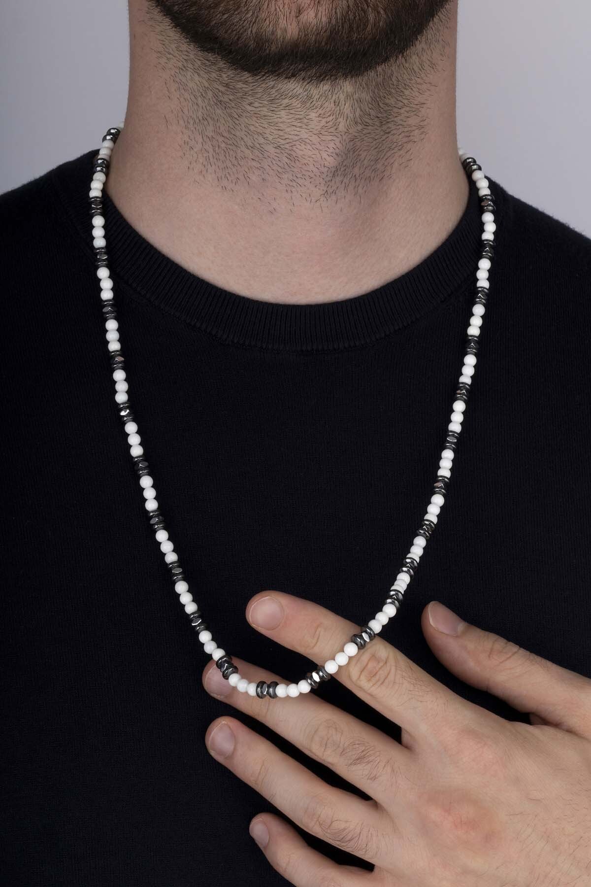 Gelince Haber VerSedef taşı ve hematitin zarif uyumuyla tasarlanan bu erkek kolye, şıklığı ve güçlü enerjisiyle öne çıkan özel bir aksesuardır. Beyaz sedef taşının saflık ve dinginliği temsil eden duruşu, hematitin parlak gri geçişleriyle birleşerek modern ve maskülen bir kontrast oluşturur.