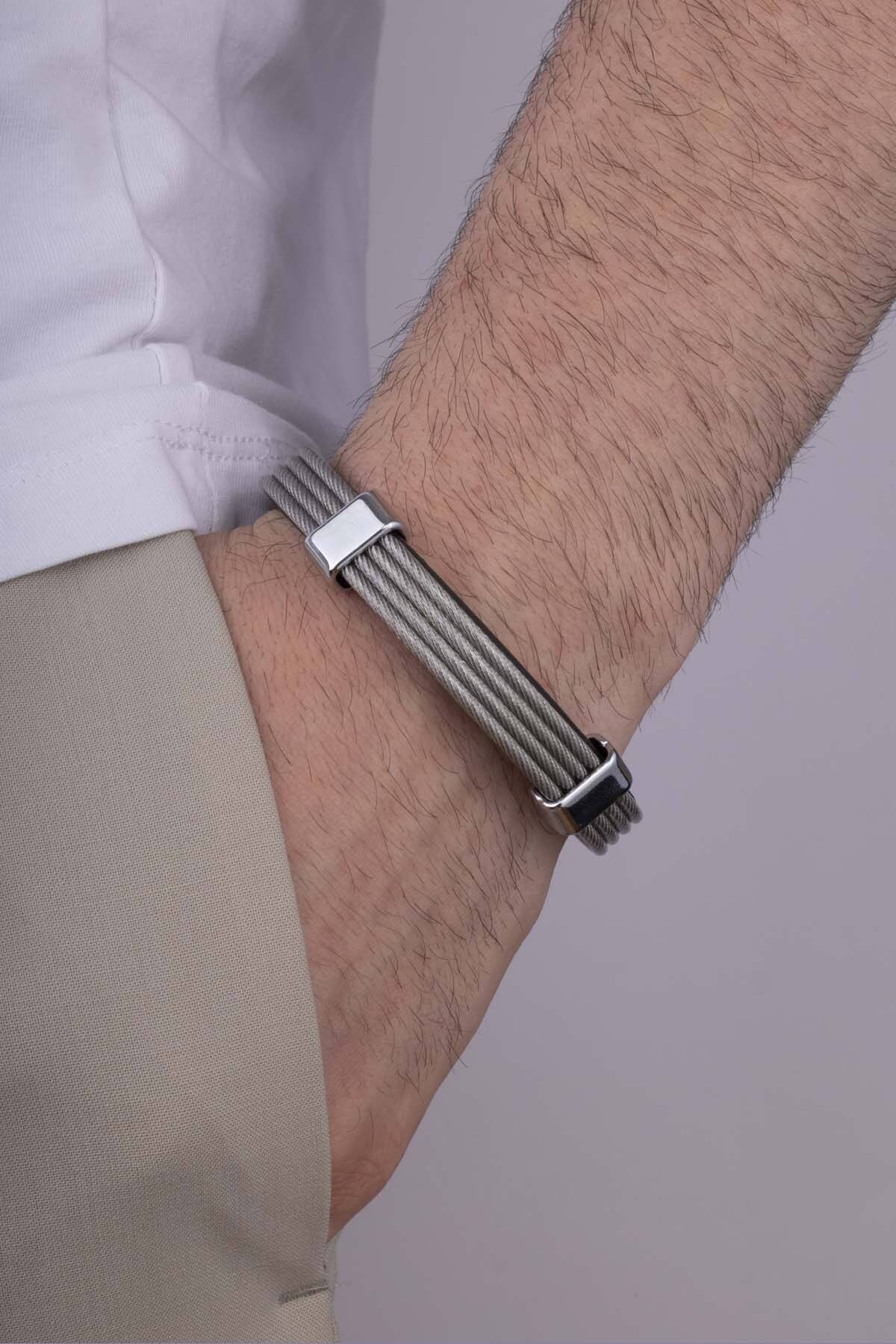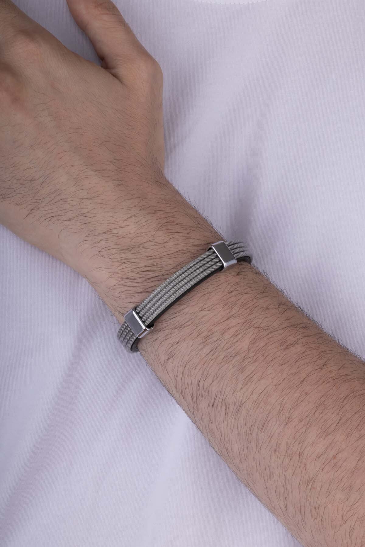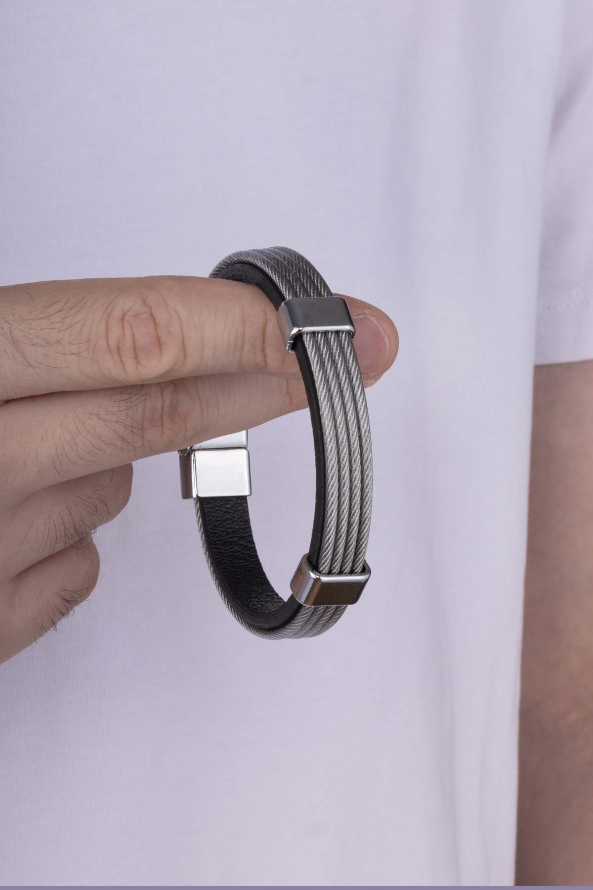 Günlük kombinlerden özel davetlere kadar geniş bir kullanım alanı sunan bu bileklik, sade ama iddialı tarzıyla dikkat çeker. Siyah deri ve gri çelik tonlarının uyumu, modern ve erkeksi bir stil isteyen erkekler için ideal bir tercih oluşturur. Ayarlanabilir yapısı sayesinde bileğe rahatça oturur ve uzun süreli kullanımda konfor sağlar.