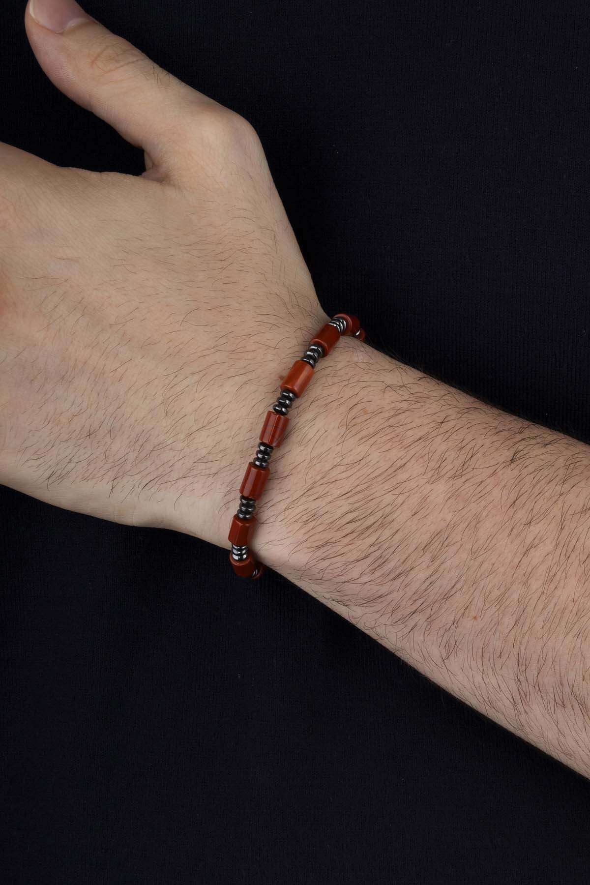 Silindir Kesim Akik Hematit Taşlı Doğal Taş Erkek Bileklik - 3