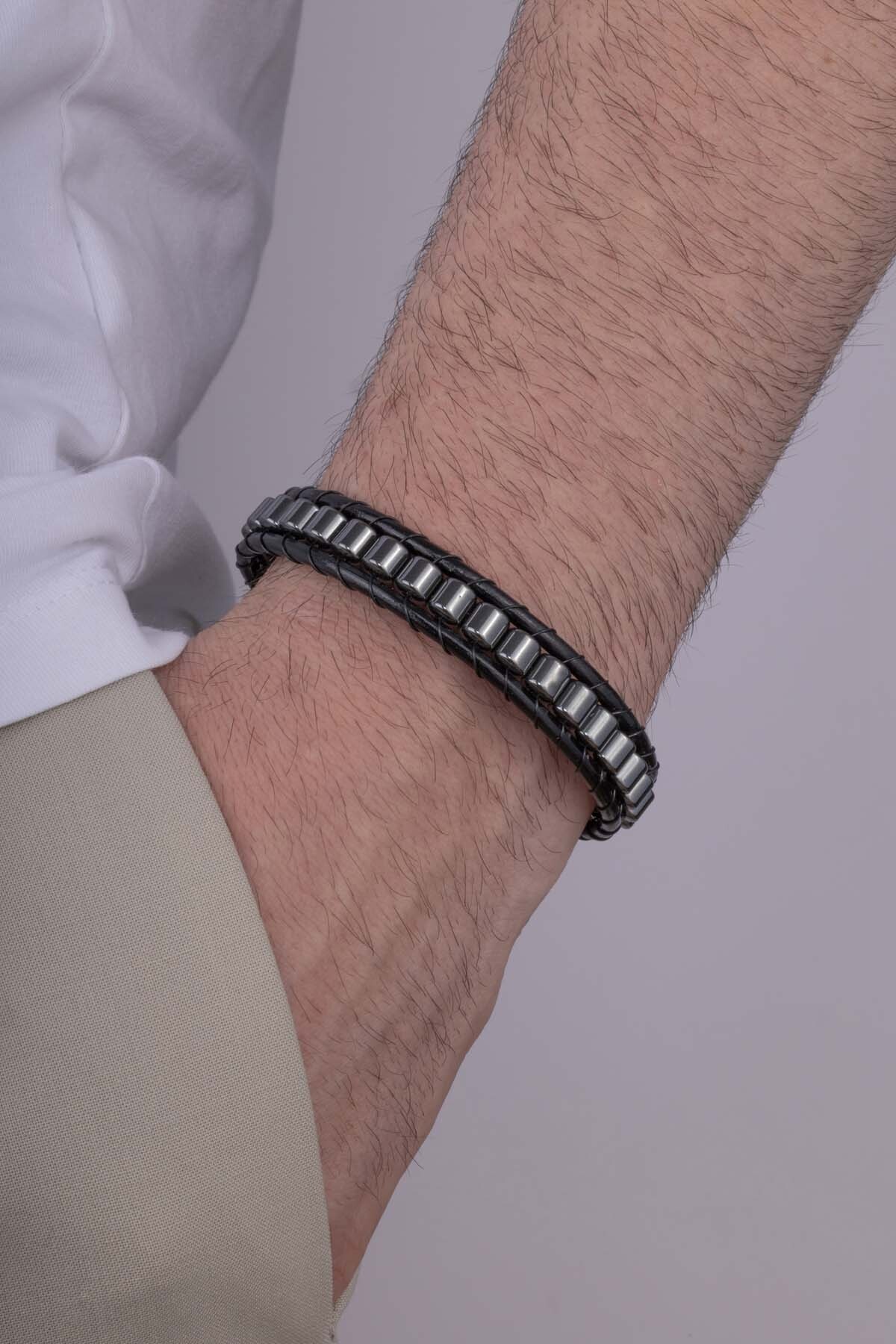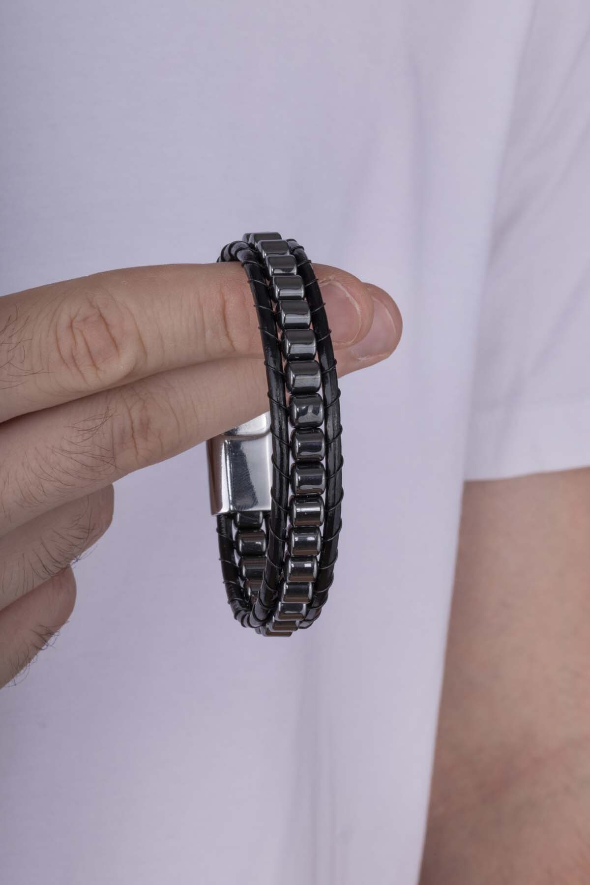 Hematit taşının en bilinen faydalarından biri kişinin zihinsel dinginliğini artırması ve stresi azaltmasıdır. Yoğun iş temposu ve günlük yaşamın getirdiği kaygılara karşı doğal bir destek sunar. Ayrıca kan dolaşımını düzenleme ve bedene canlılık katma özelliğiyle, yalnızca şıklığı değil sağlığı da destekler. Siyah deriyle birleşen hematit taşları, enerjiyi güçlü bir şekilde korurken uzun süreli kullanımda dayanıklılık sağlar.