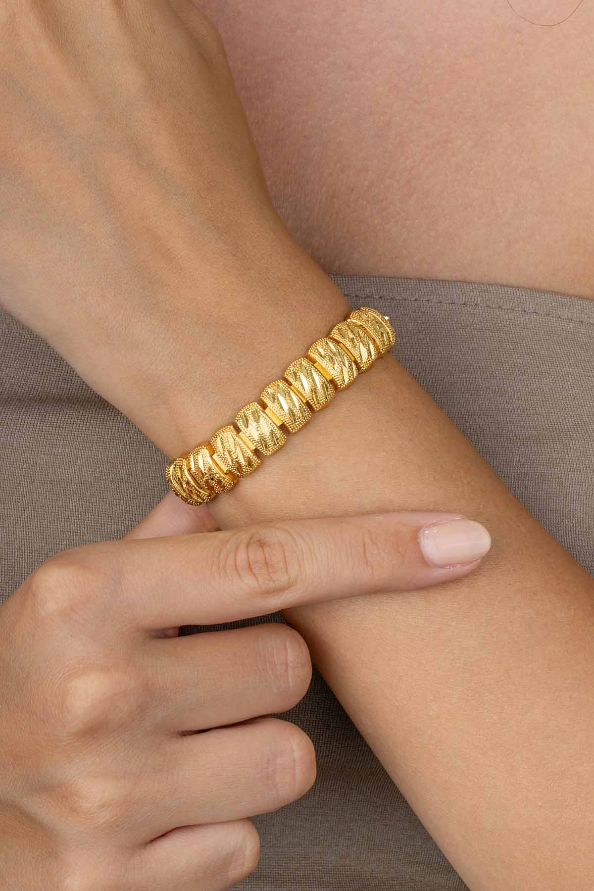Gösterişli tasarımı ve parlak detaylarıyla bileğinizde şıklığı ön plana çıkaran bu bileklik, her kombine güçlü bir stil katıyor.