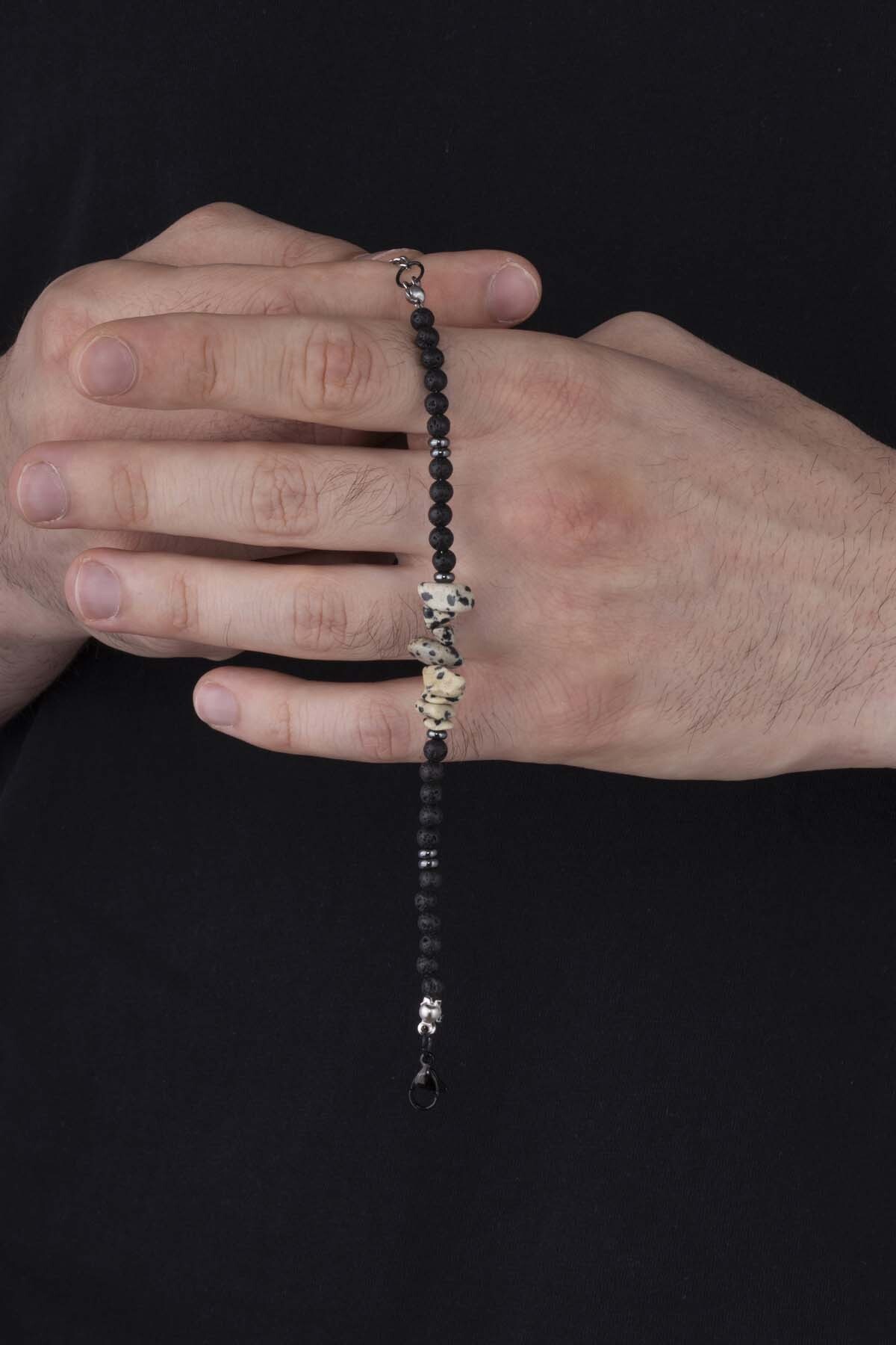 Erkek kullanıma hitap eden bu tasarım, hem kişisel kullanım hem de enerji yüklü bir hediye seçeneği olarak tercih edilebilir. Hem günlük yaşamda hem de özel günlerde güçlü bir aksesuar olarak öne çıkar. Doğal taşların şifa verici etkilerini üzerinde taşımak isteyenler için işlevsel ve estetik bir bilekliktir.