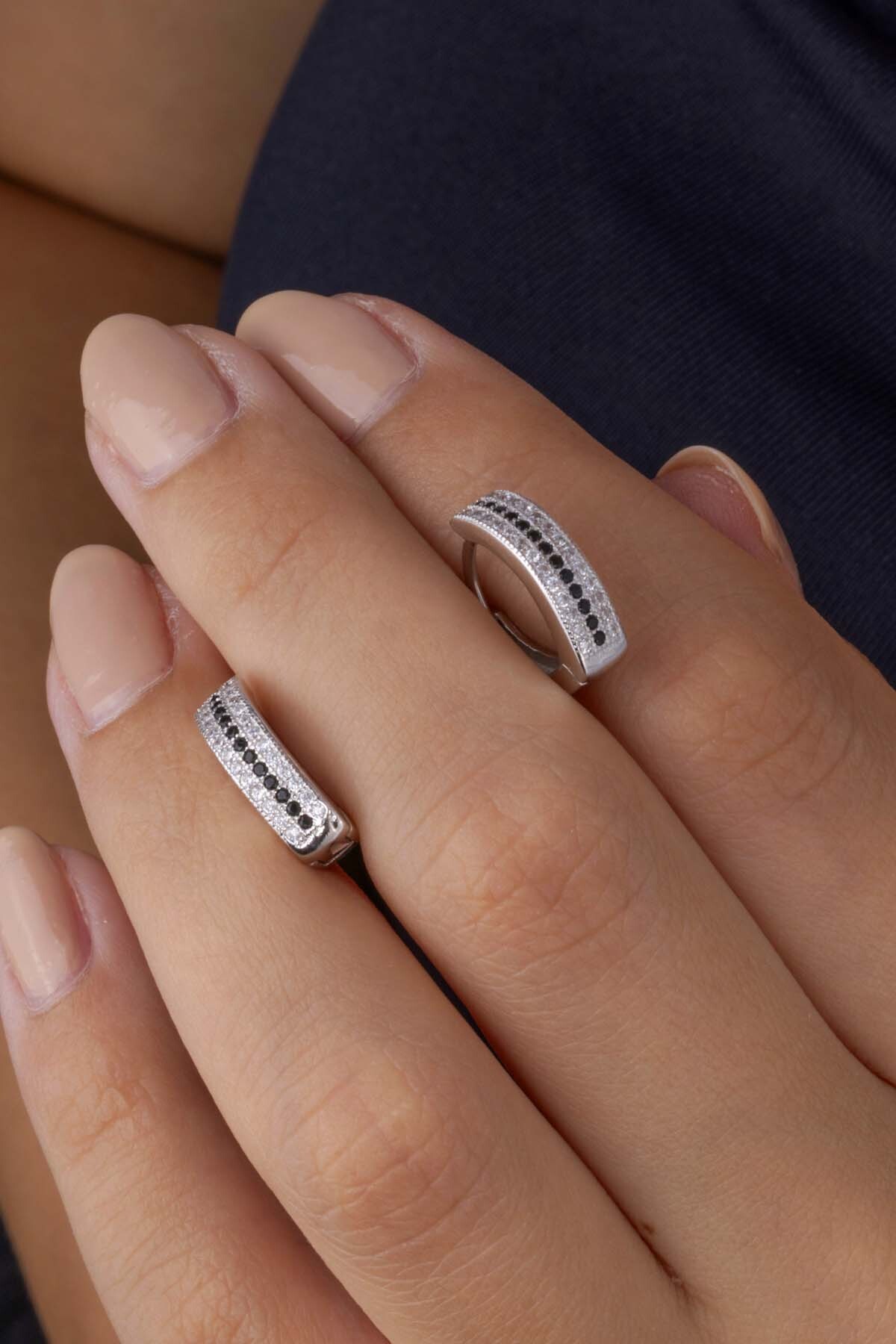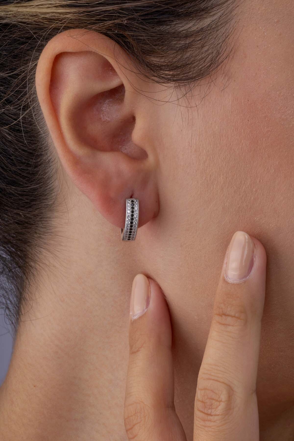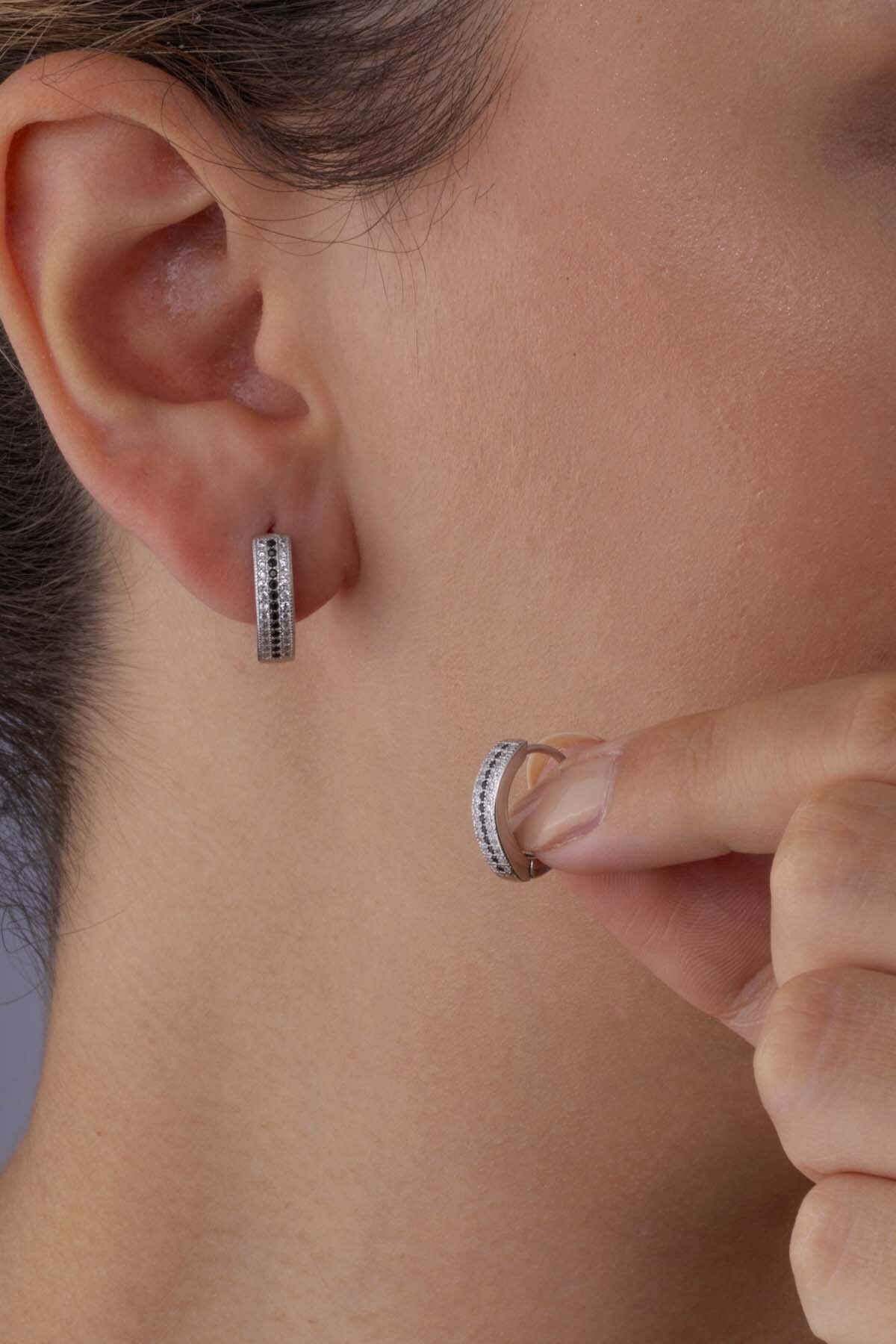 Siyah Taş Geçişli 3 Sıra Yarım Tur Gümüş Kadın Küpe - 2