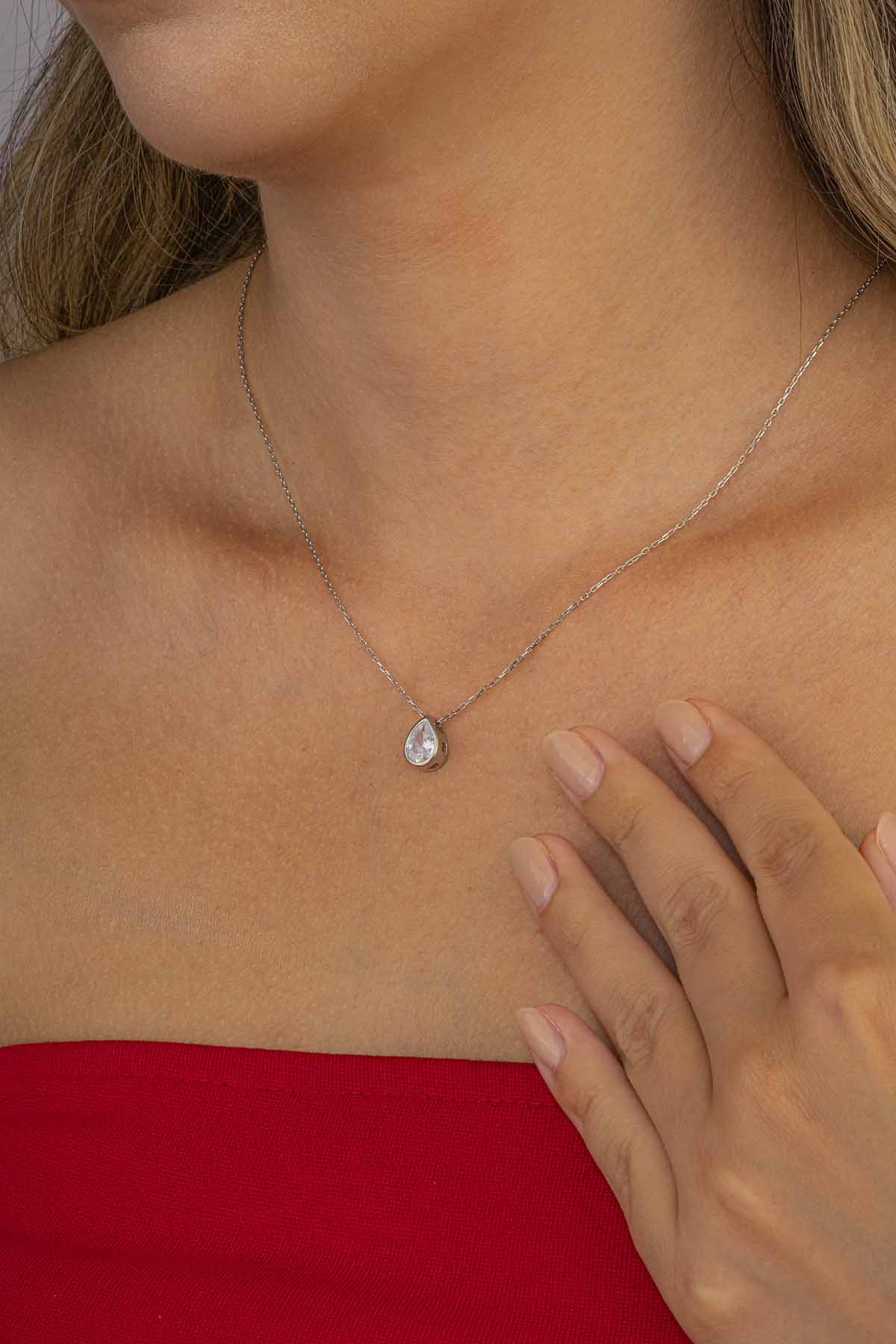 Su Damlası Gümüş Kolye - 1