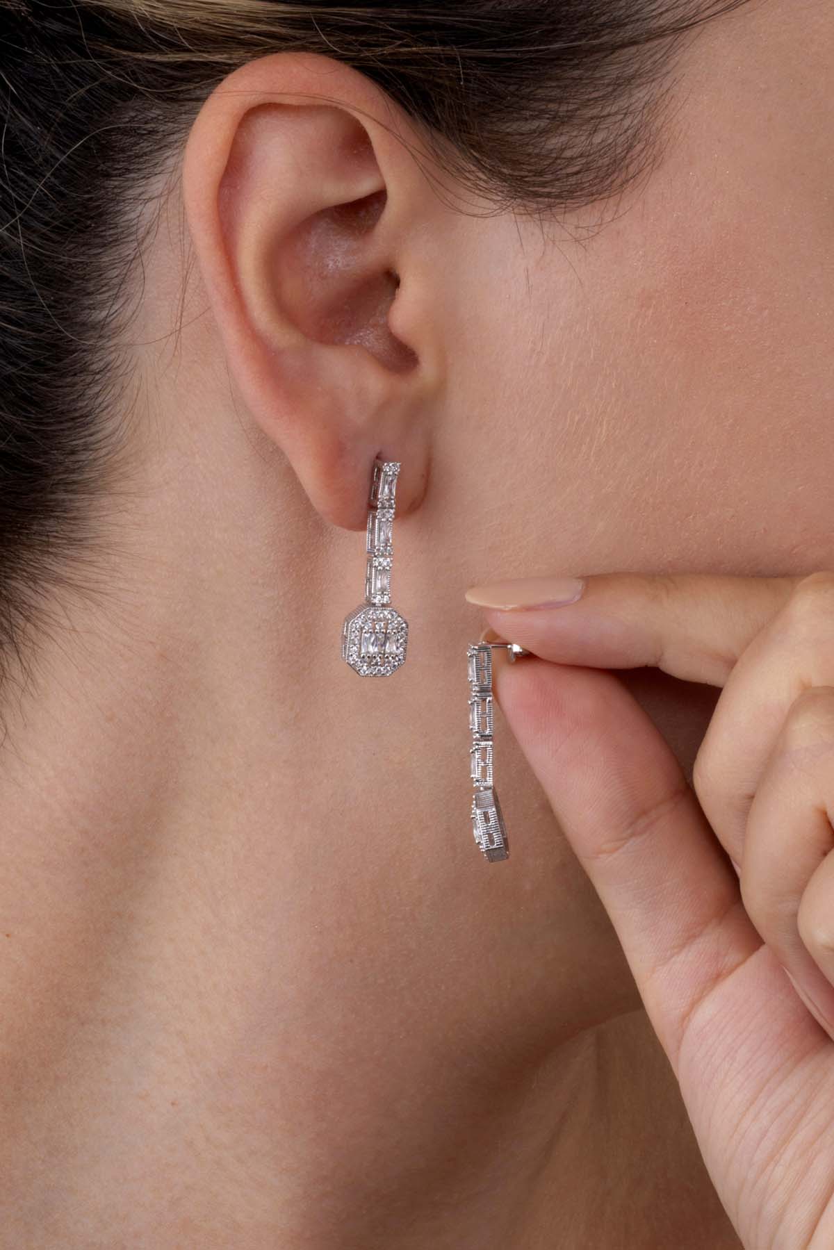 Su Yolu Süzme Baget Taşlı 925 Ayar Gümüş Küpe - 1