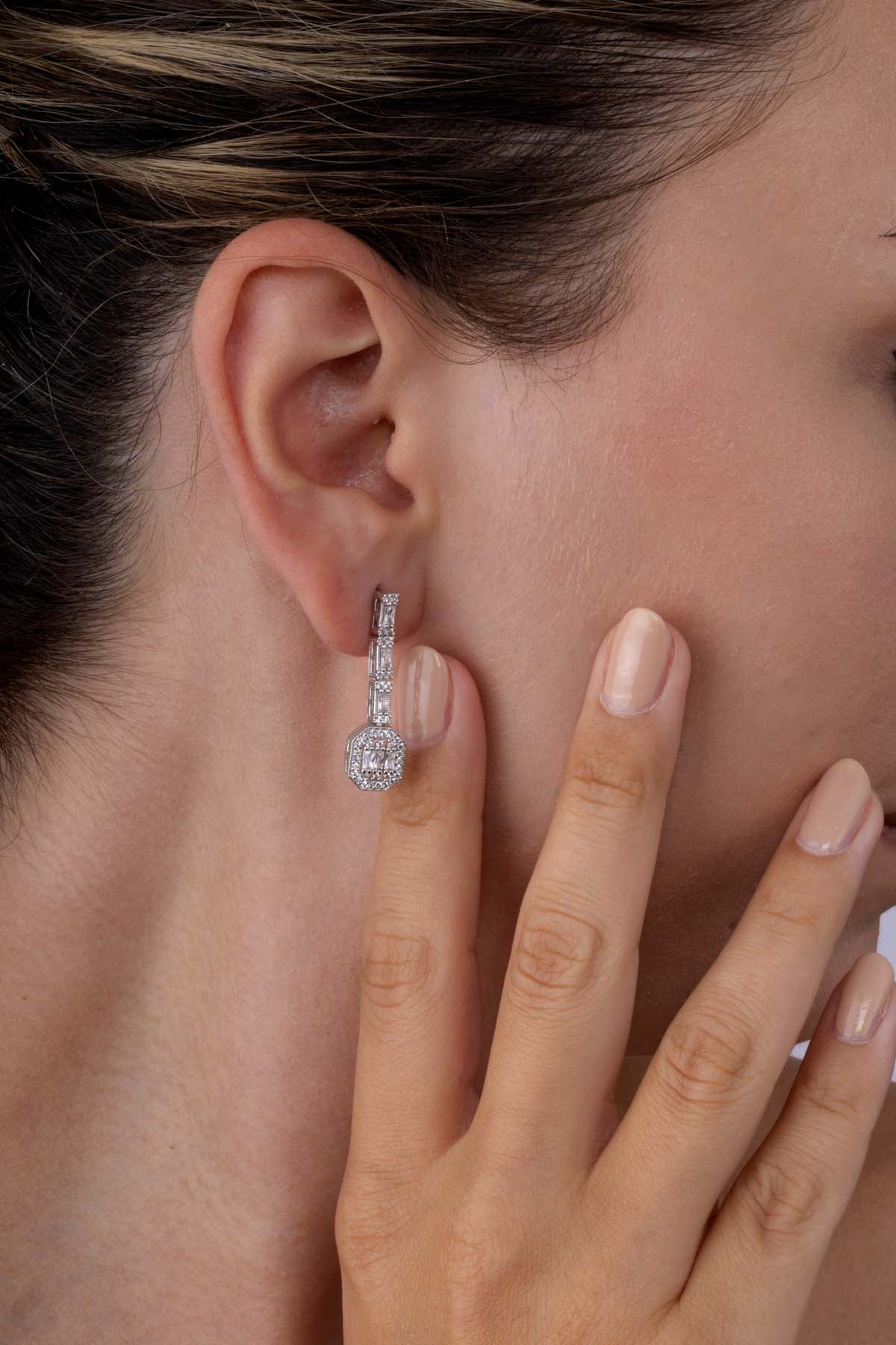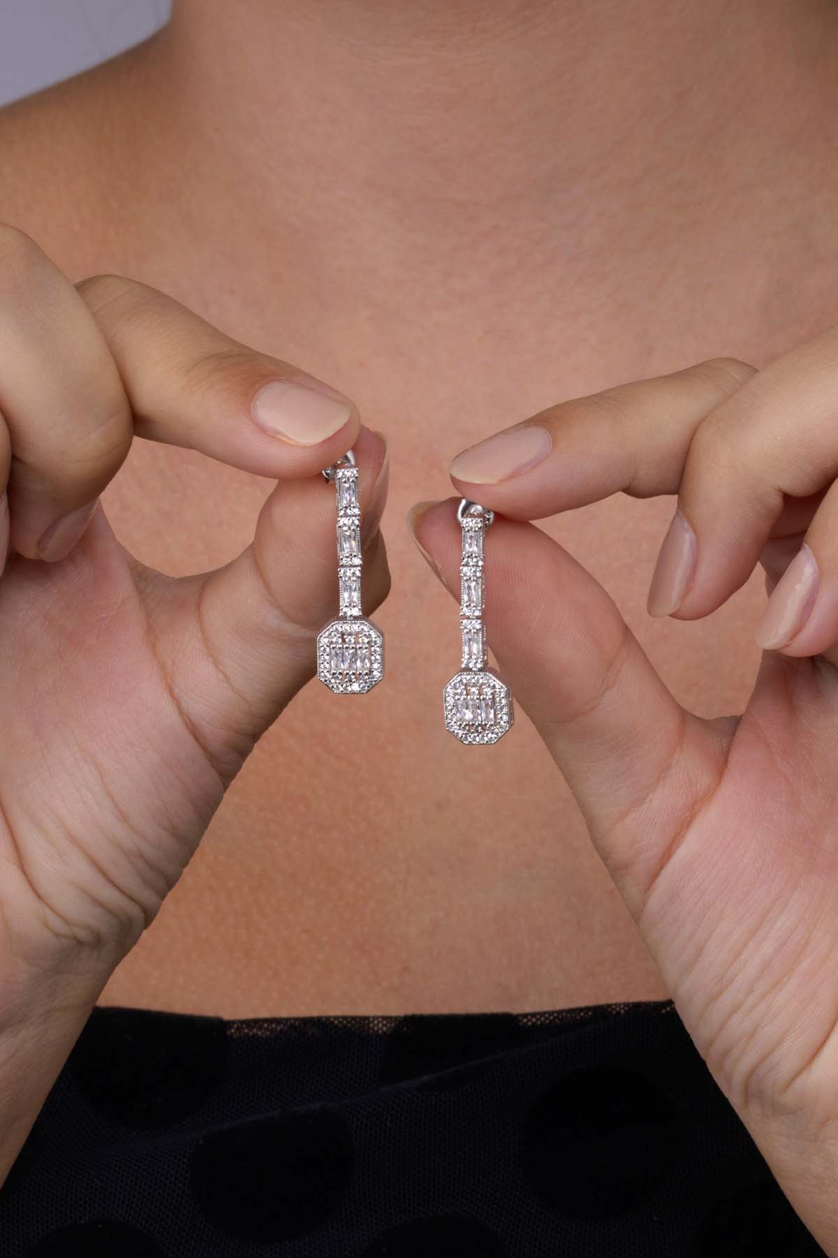 Su Yolu Süzme Baget Taşlı 925 Ayar Gümüş Küpe