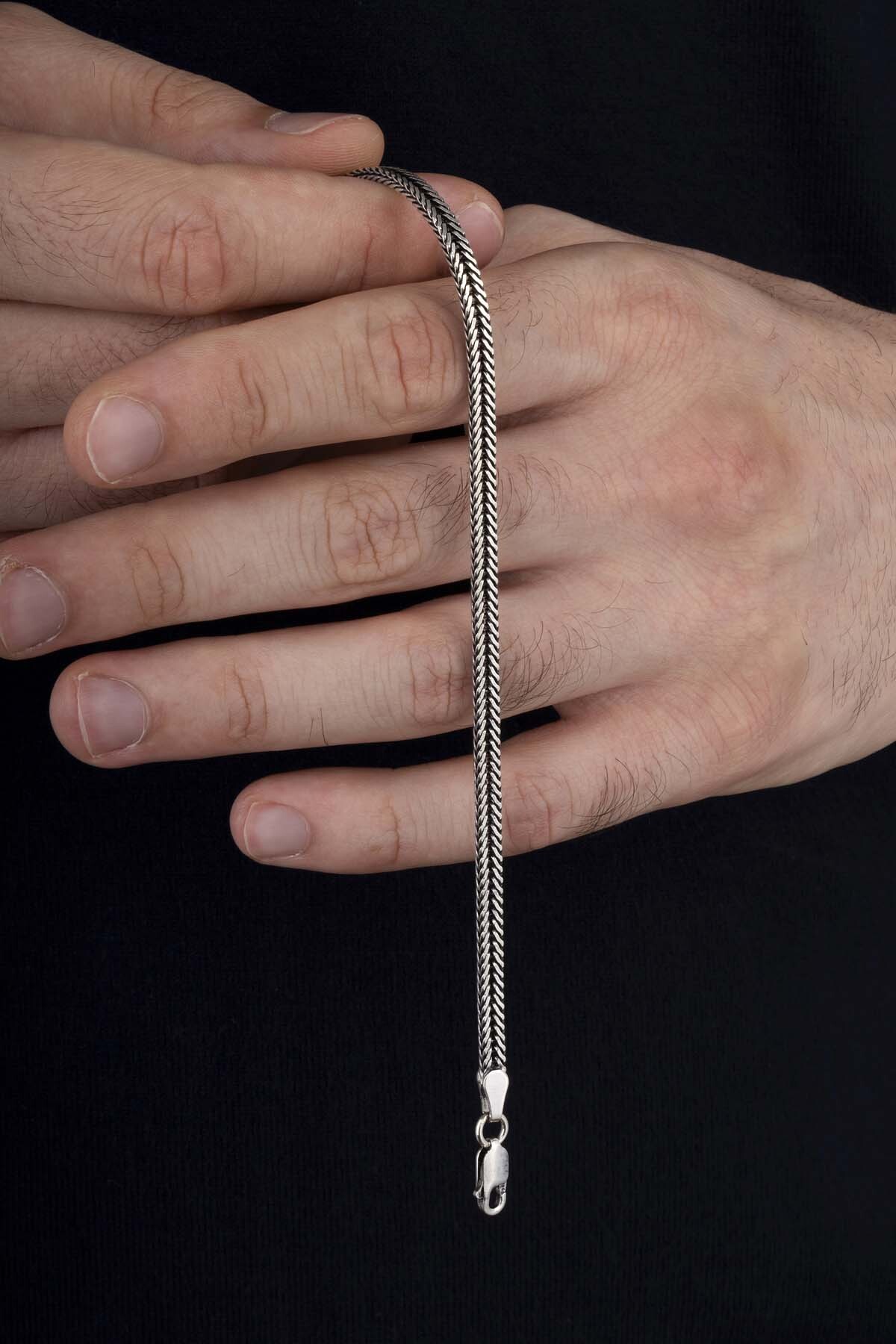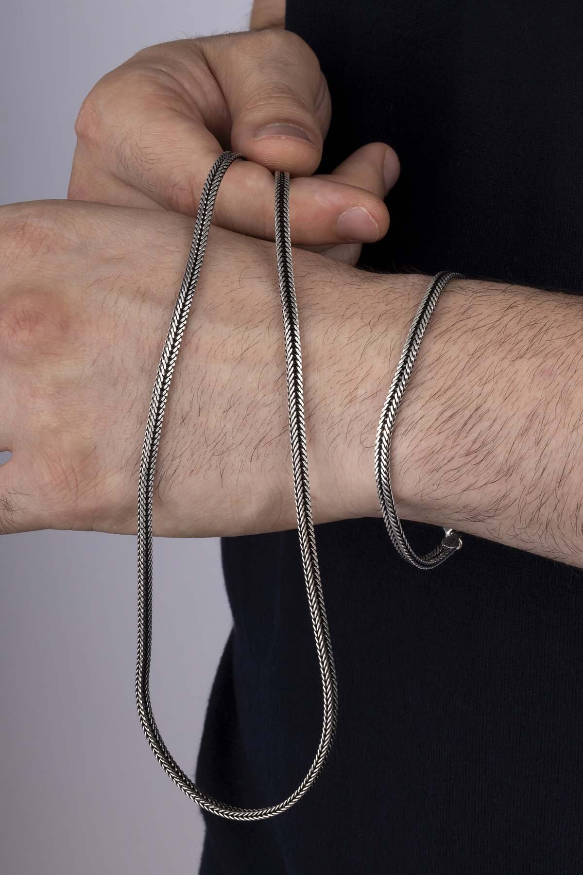 Tilki Kuyruğu 925 Ayar Gümüş Erkek Zincir Bileklik Kolye Kombini - 4