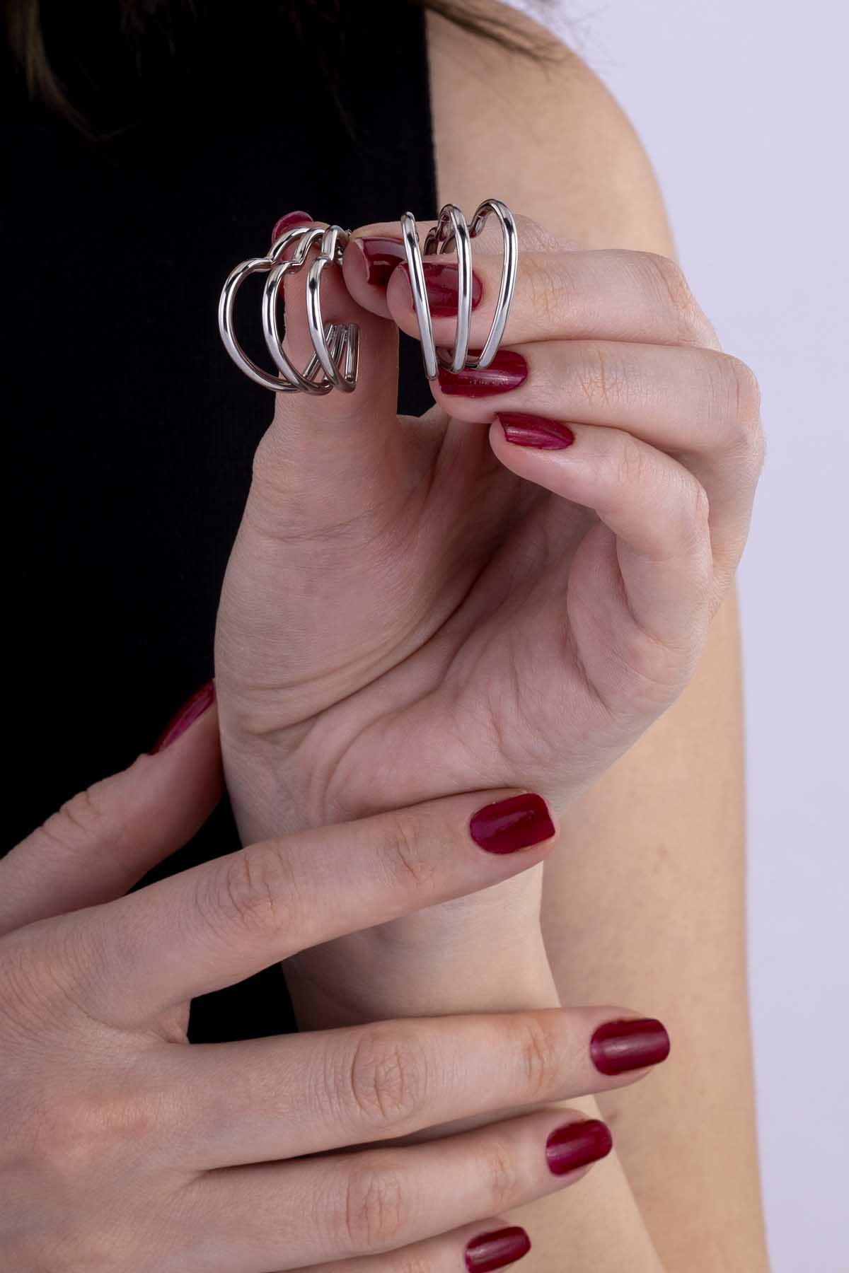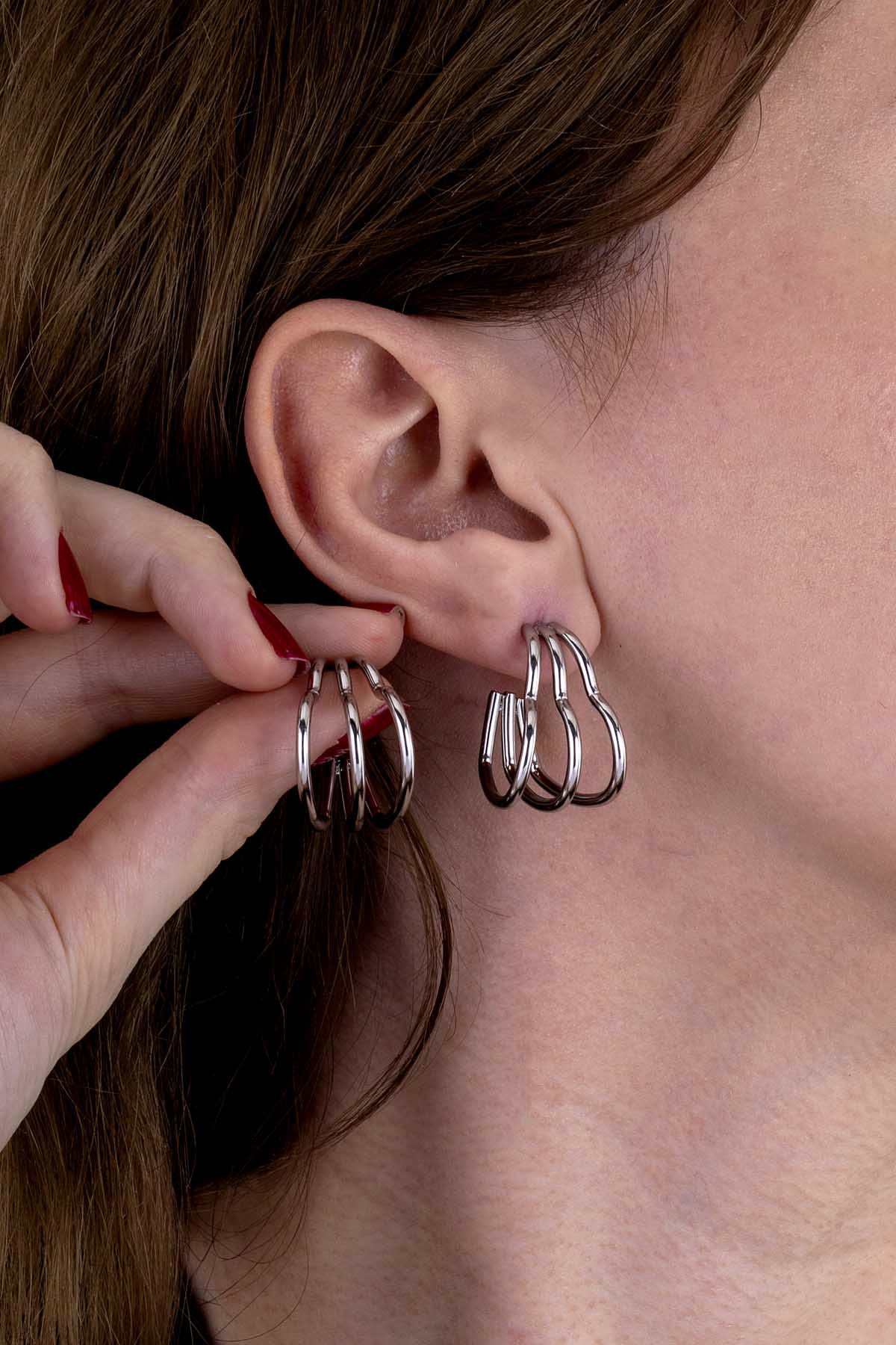 Üçlü Yarım Tur Birleşik Halka Model Beyaz Altın Kaplama Çelik Kadın Küpe
