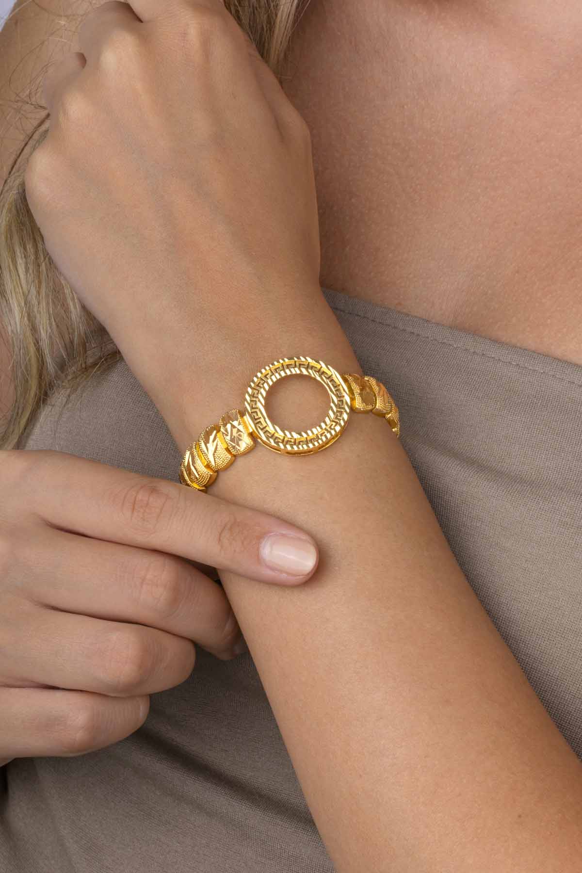Göz İşlemeli Altın Kaplama Kadın Charm Bileklik - Gümüş Pazarım Göz İşlemeli Altın Kaplama Kadın Charm Bileklik - Gümüş Pazarım (1)