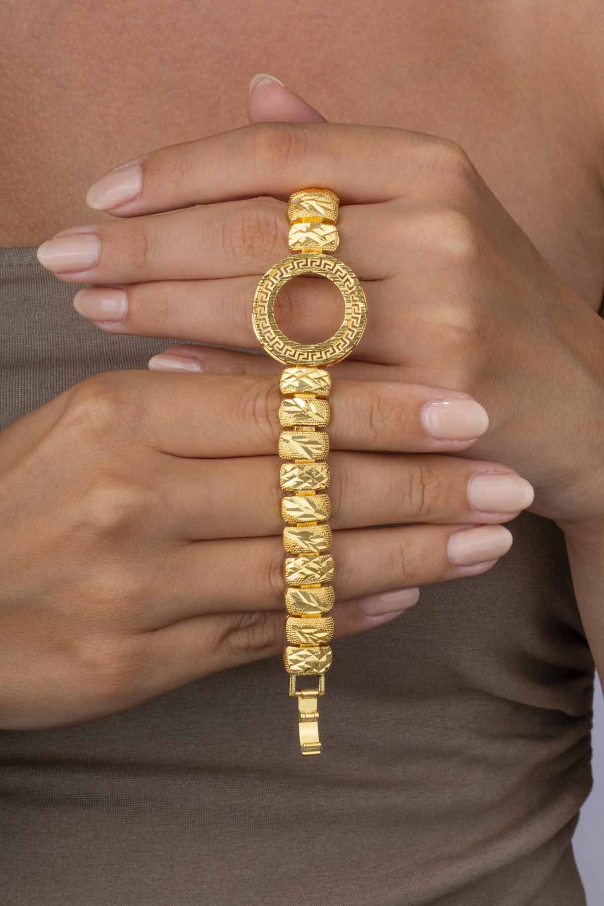 “Yarım altın takılabilen motifli altın kaplama çelik bileklik, düğün ve özel günler için şıklığı tamamlar. Kararma yapmaz, geleneksel ve modern tasarımıyla uzun ömürlüdür.”