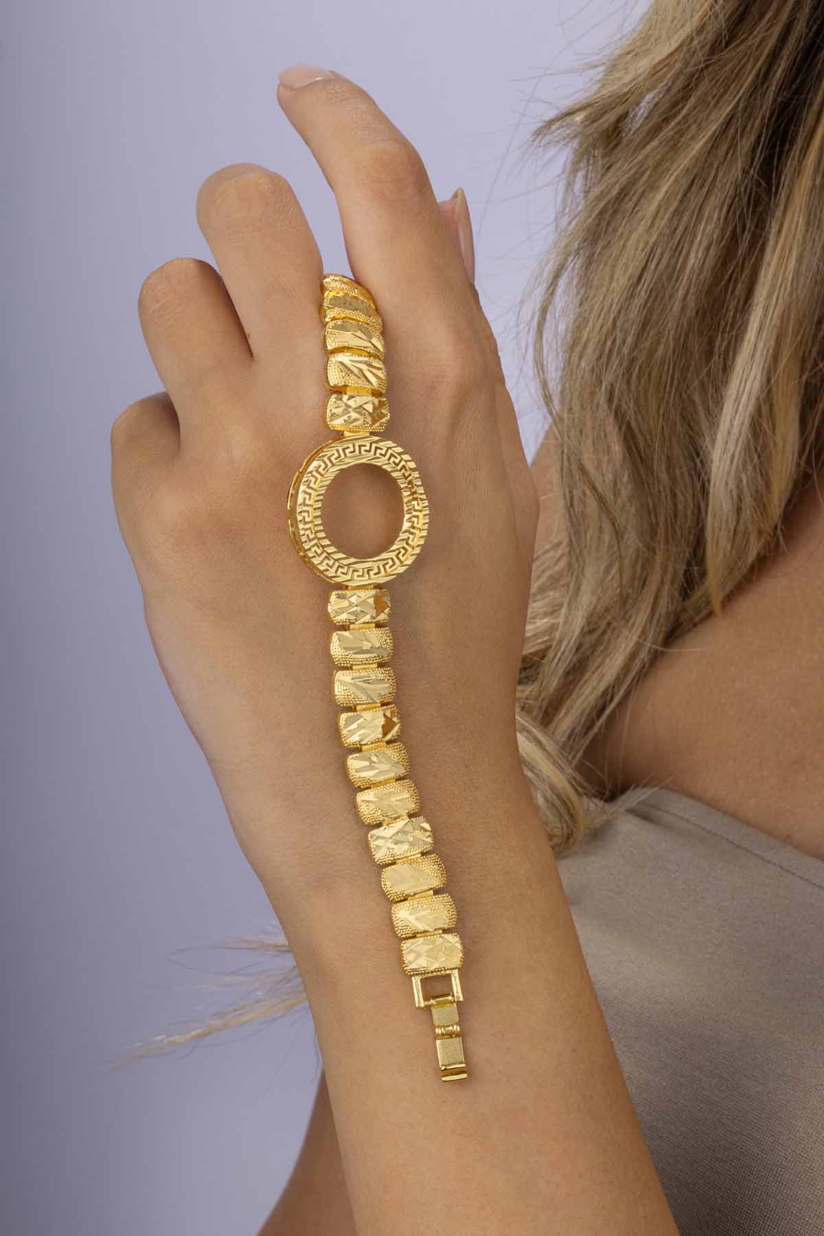 “Yarım altın koymak için özel olarak tasarlanmış motifli dikdörtgen altın kaplama çelik kadın bileklik, geleneksel şıklığı modern detaylarla bir araya getirir. Ortasında yarım altın takılabilen yuvarlak motif bölümü sayesinde düğün, nişan ve özel günlerde zarafetinizi ön plana çıkarır. Altın kaplama çelik malzeme ile üretilen bu kadın bileklik, kararma yapmaz ve uzun yıllar güvenle kullanılabilir. Hem günlük kullanımda hem de özel davetlerde altın takı şıklığını ekonomik fiyatla sunan motifli çelik bileklik, sevdiklerinize hediye edebileceğiniz anlamlı ve göz alıcı bir aksesuar seçeneğidir. Yarım altın bileklik modelleri arasında dikkat çeken bu tasarım, geleneksel takıları modern çizgilerle seven kadınların favorisi olacak.”
