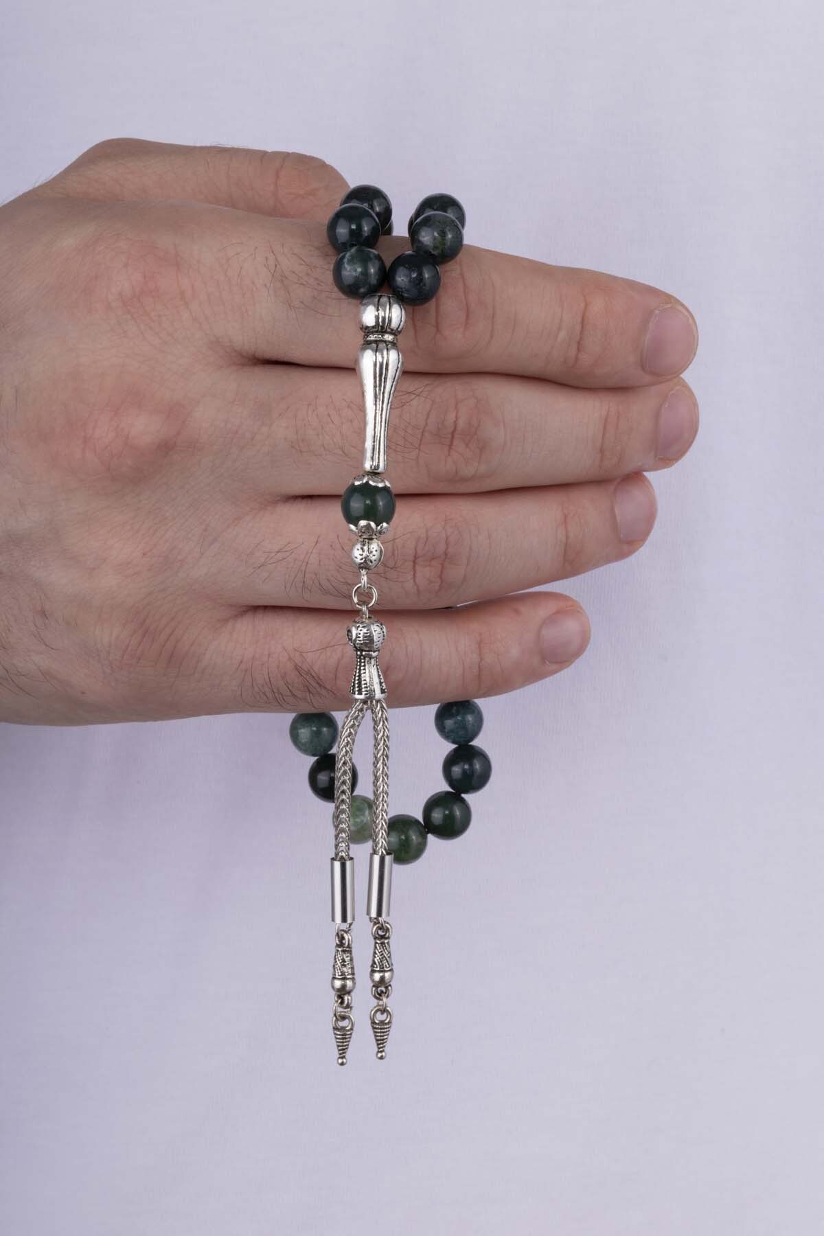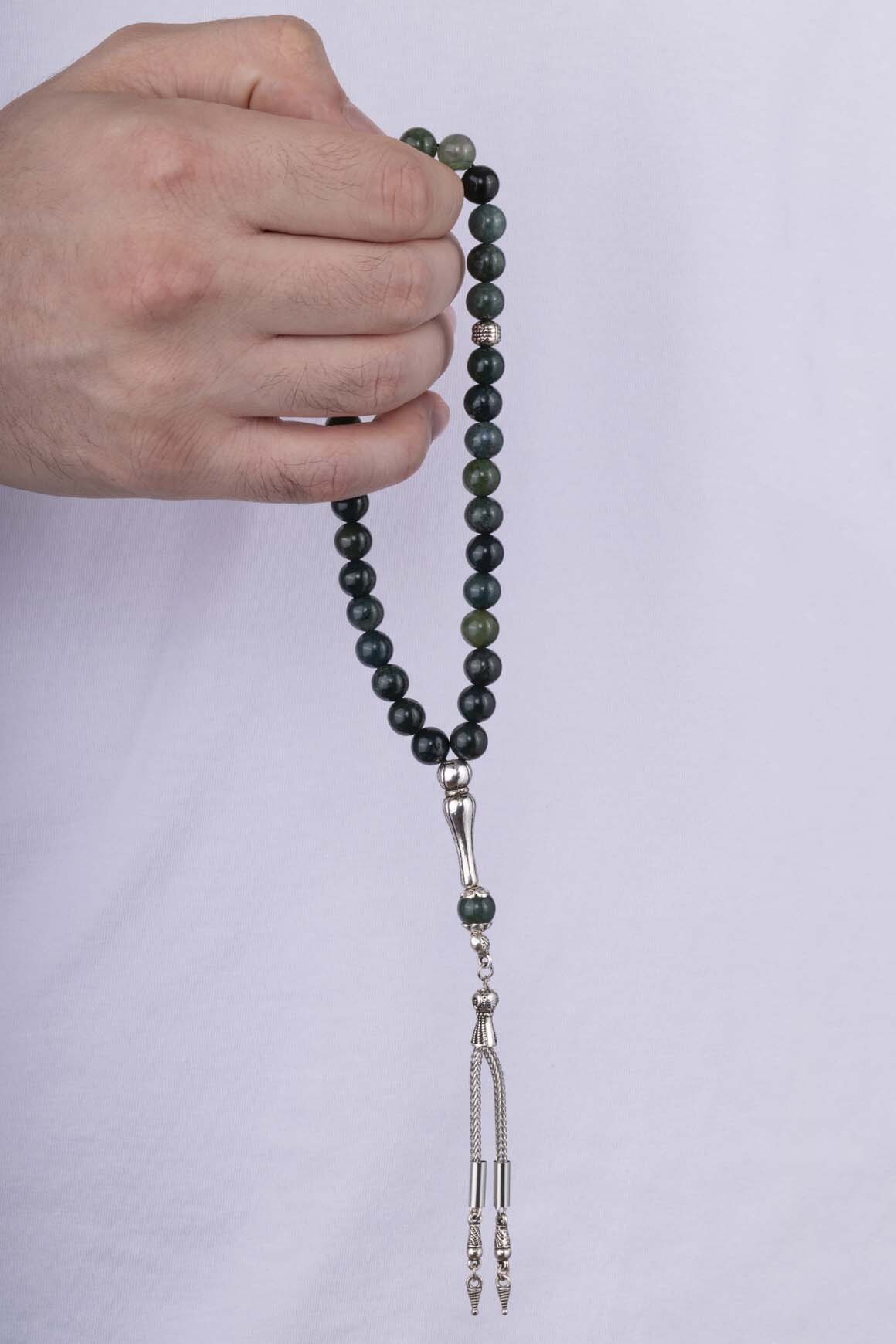 Yeşil Geçişli Akik Taşı Doğal Taş Tesbih - 3