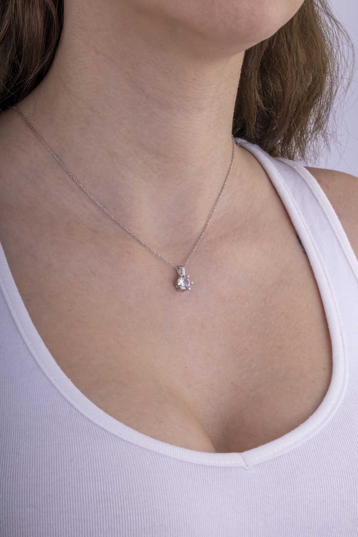 925 ayar gümüşten üretilen kolye uzun süre parlaklığını koruyan, dayanıklı ve kaliteli bir yapıya sahiptir. İnce gümüş zincir, taşın zarif duruşunu öne çıkarırken boyunda hafif ve konforlu bir kullanım sunar. Minimal tasarımına rağmen güçlü bir ışıltı sunan kolye, her yaştan kadının stiline rahatlıkla uyum sağlar. Tektaşın zarafeti sayesinde klasik takı tutkunlarının vazgeçilmez parçaları arasına girer.