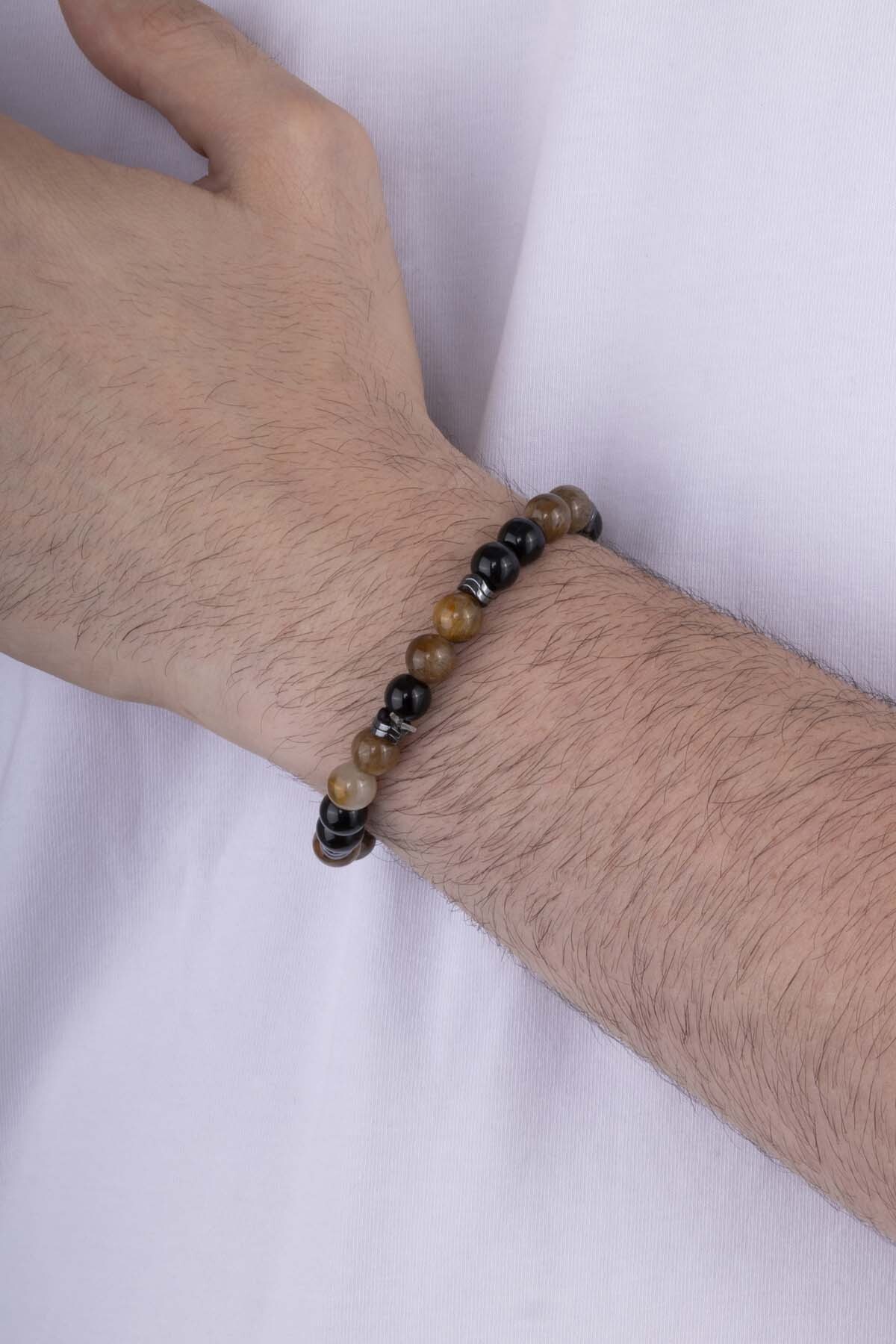 Yuvarlak Kesim Damarlı Akik Taşı Doğal Taş Erkek Bileklik - 1
