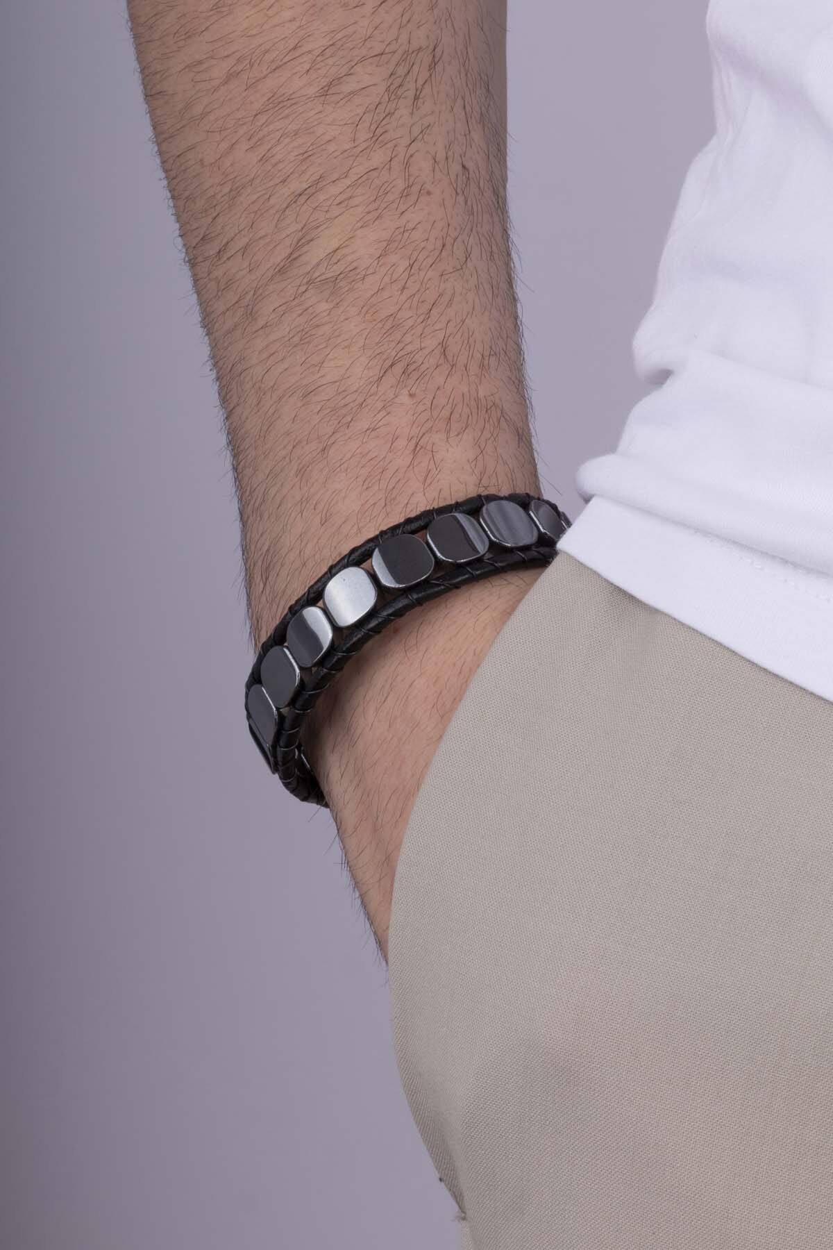 Yuvarlak kesim hematit taşlı deri bileklik, şıklığı ve spiritüel faydaları bir arada sunar. Hem özel günlerde şık kombinlerin tamamlayıcısı hem de günlük hayatta doğal bir enerji dengeleyici olarak kullanılabilir. Kaliteli işçiliği ve modern tasarımıyla uzun ömürlü kullanım vadeden bu bileklik, kendine güveni ve tarzı ön planda tutan erkekler için özel bir seçimdir.