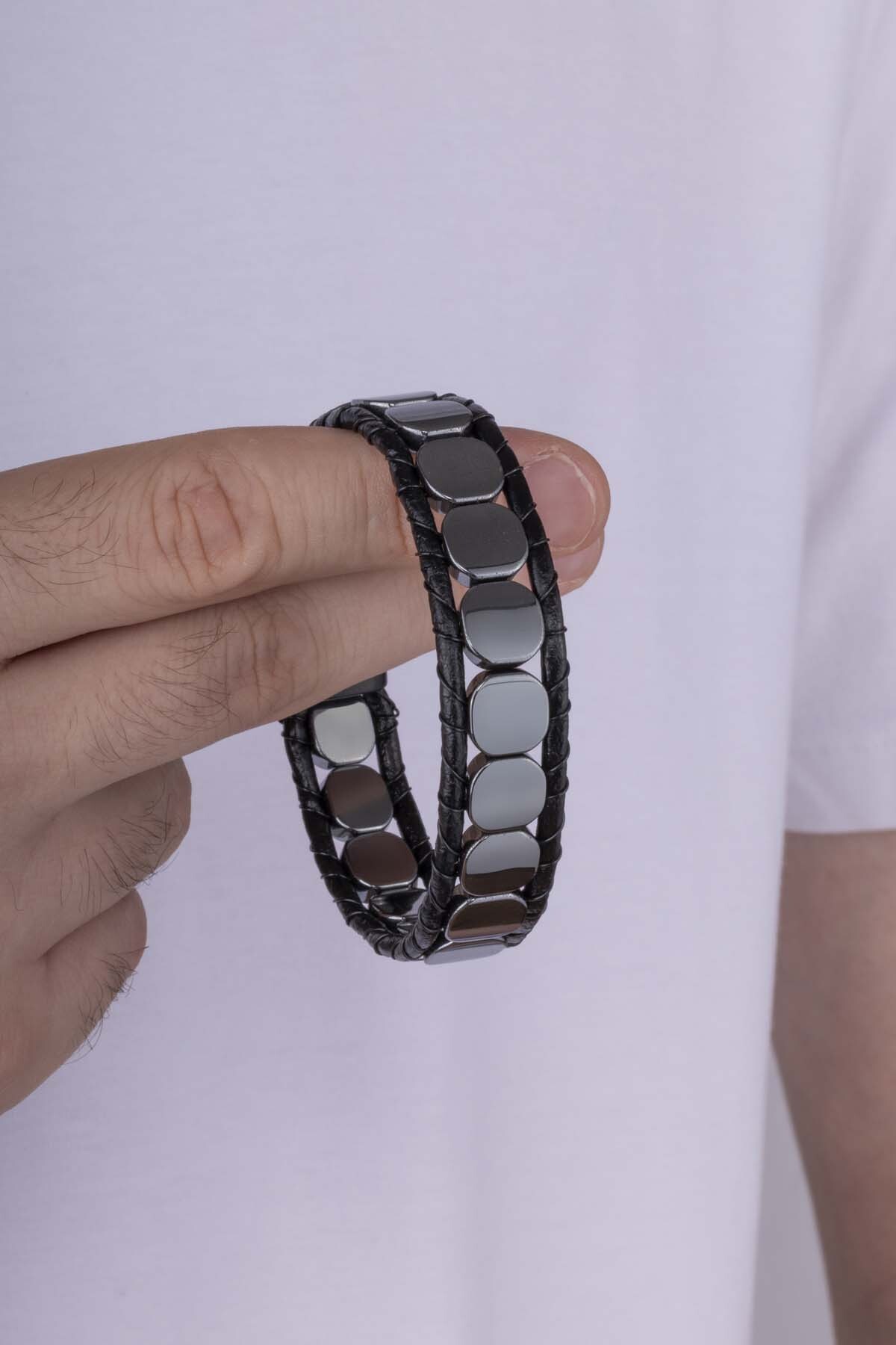 Hematit taşının en önemli özelliklerinden biri odaklanma ve konsantrasyonu artırmasıdır. Bu nedenle iş hayatında dikkat dağınıklığına karşı doğal bir destek sunar. Ayrıca negatif enerjiyi uzaklaştırma gücü ile kişinin kendini daha enerjik, motive ve kararlı hissetmesine yardımcı olur. Doğal taş enerjisiyle birleşen deri detaylar, günlük hayatta rahat kullanım sağlarken güçlü bir stil ifadesi oluşturur.