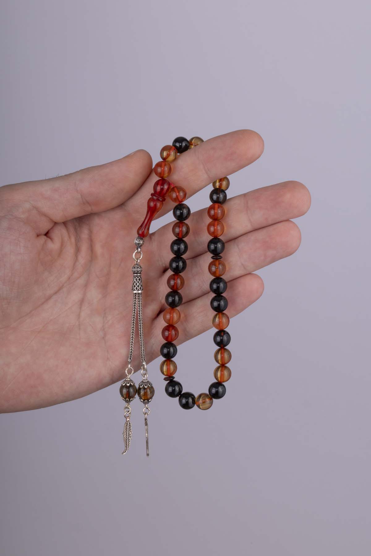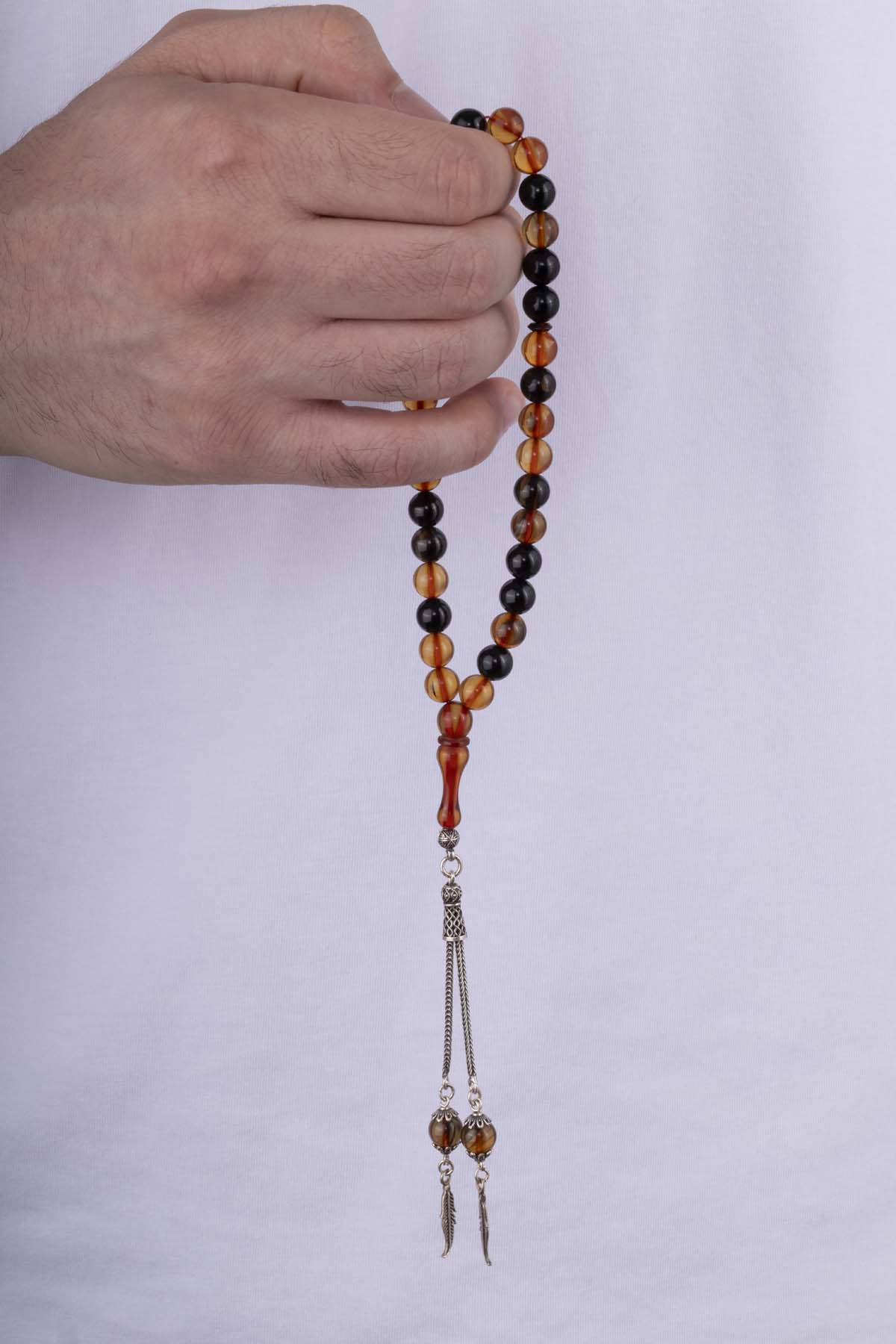 Yuvarlak Kesim Renk Süzmeli Gümüş İmameli Kehribar Tesbih - 1
