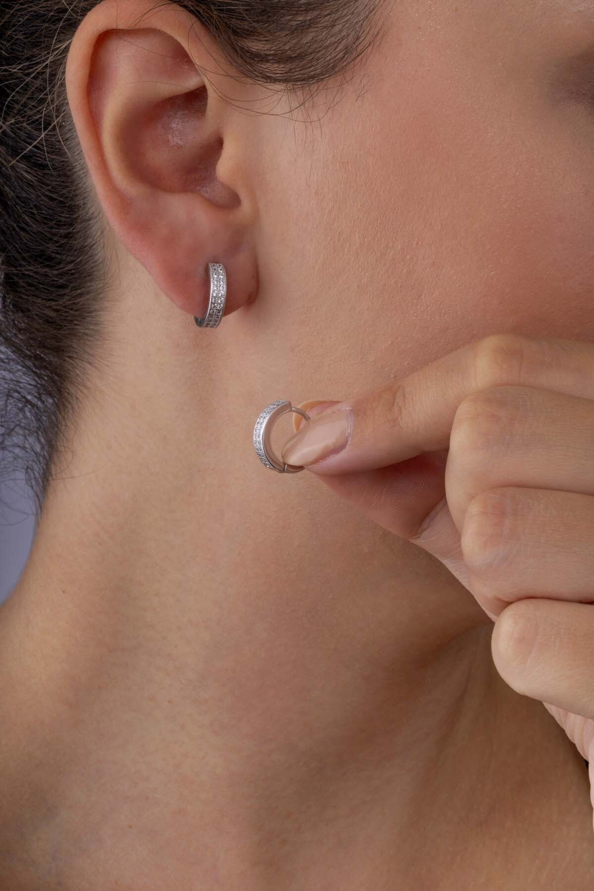 Zirkon Taşlı 3 Sıra Tamtur Gümüş Kadın Küpe - 2